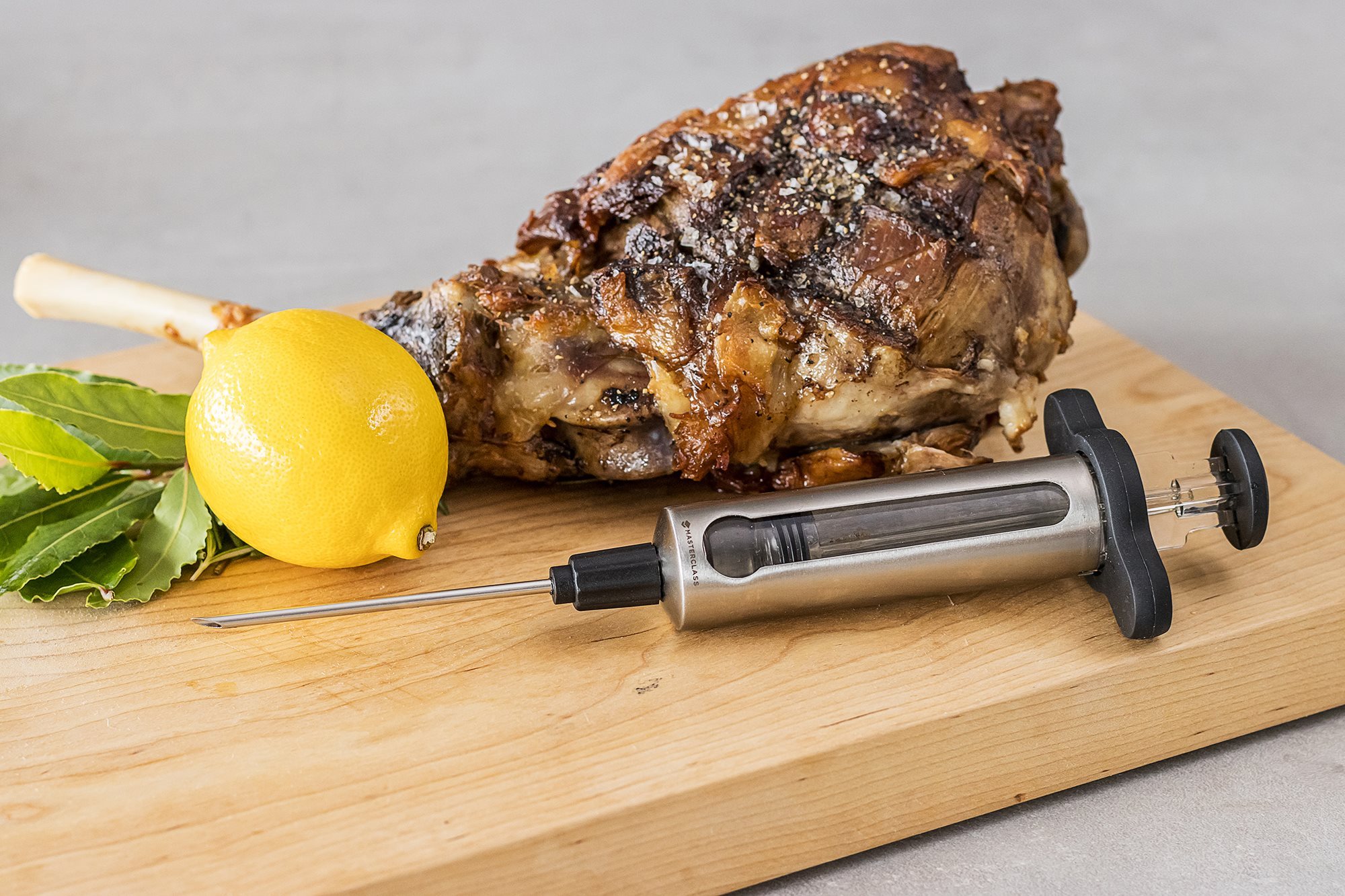 Seringa este echipata cu 2 ace din inox - unul subtire, pentru injectarea marinatelor lichide si unul gros, pentru injectarea marinatelor cu verdeata si condimente direct in carne.