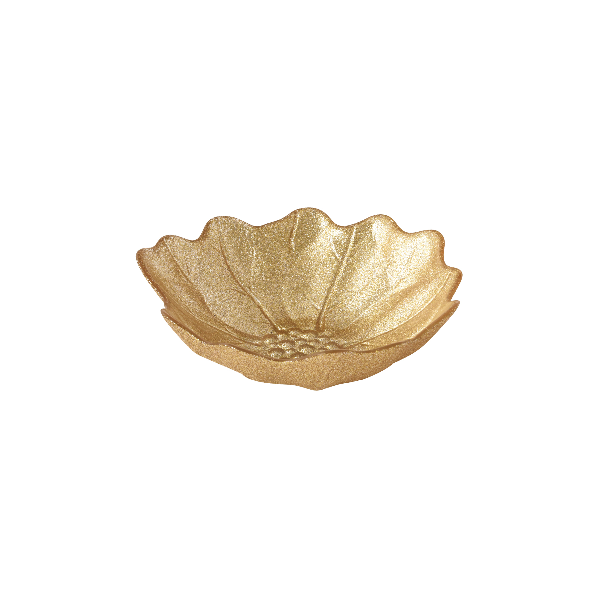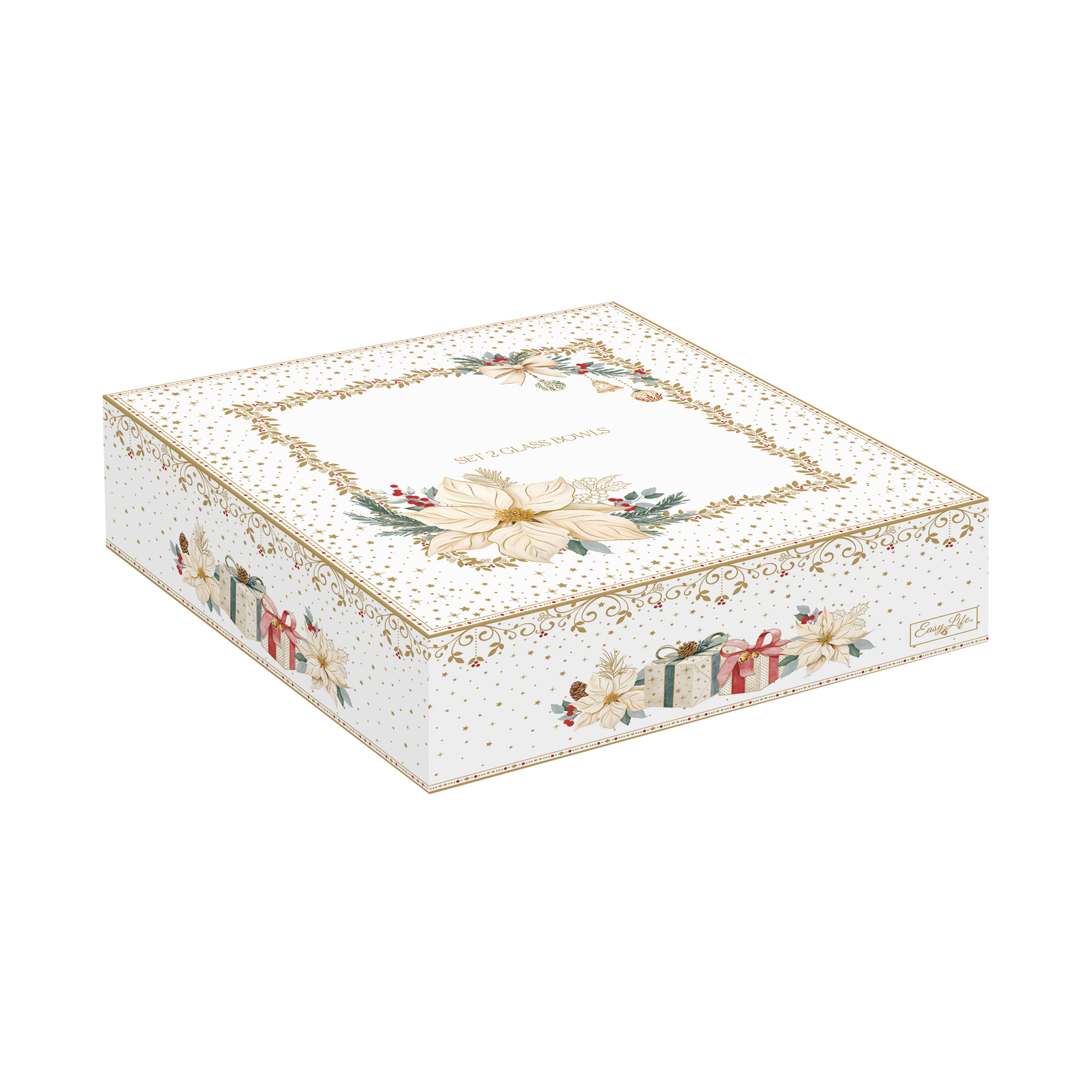 Bolurile aurii din sticla, cu diametre diferite, marca Nuova R2S, modelate si atent decorate pentru a reprezenta floarea simbolica a Craciunului sunt cu adevarat elegante si vor aduce stralucire meselor de sarbatori. Bolurile pot fi combinate cu alte vase din colectia White Elegance sau alte colectii festive Nuova R2S.