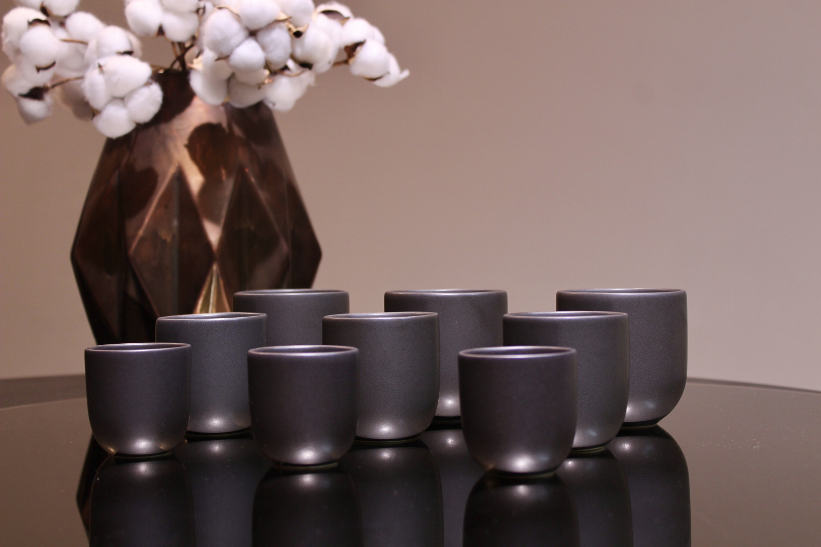 Nuanta intensa de negru carbon mat, imbogatita cu irizatii subtile de negru-maro-cenusiu, ofera un aspect modern si exclusivist, potrivit atat pentru mesele de zi cu zi, cat si pentru ocazii speciale. Peretii grosi contribuie la mentinerea temperaturii bauturii, oferind in acelasi timp o senzatie solida si placuta la utilizare.