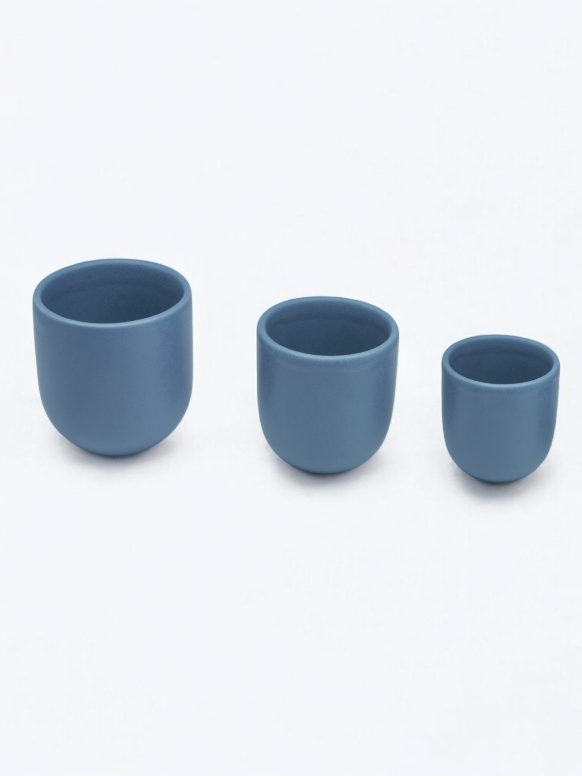 Setul de cesti cafea tip pahare NOVUM Velaris Blue Moon contine 3 pahare de cafea din gresie ceramica premium - 250 ml, 150 ml si 80 ml - glazurate manual intr-o nuanta sofisticata de albastru lunar mat.Textura catifelata, cromatica inspirata din peisajele cosmice si finisaj de lux.Ideal pentru espresso, ristretto, cappuccino, latte sau servirea deserturilor. Potrivite pentru acasa, HORECA si cadouri corporate personalizate.