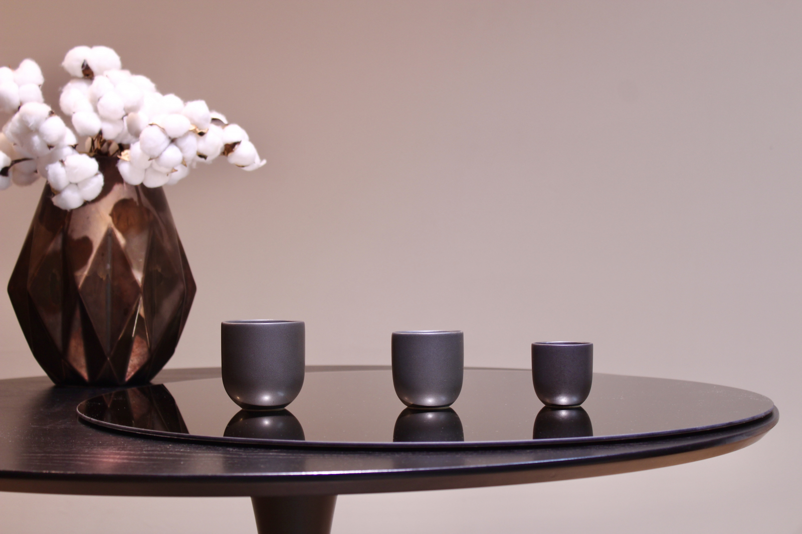 Nuanta intensa de negru carbon mat, imbogatita cu irizatii subtile de negru-maro-cenusiu, ofera un aspect modern si exclusivist, potrivit atat pentru mesele de zi cu zi, cat si pentru ocazii speciale. Peretii grosi contribuie la mentinerea temperaturii bauturii, oferind in acelasi timp o senzatie solida si placuta la utilizare.