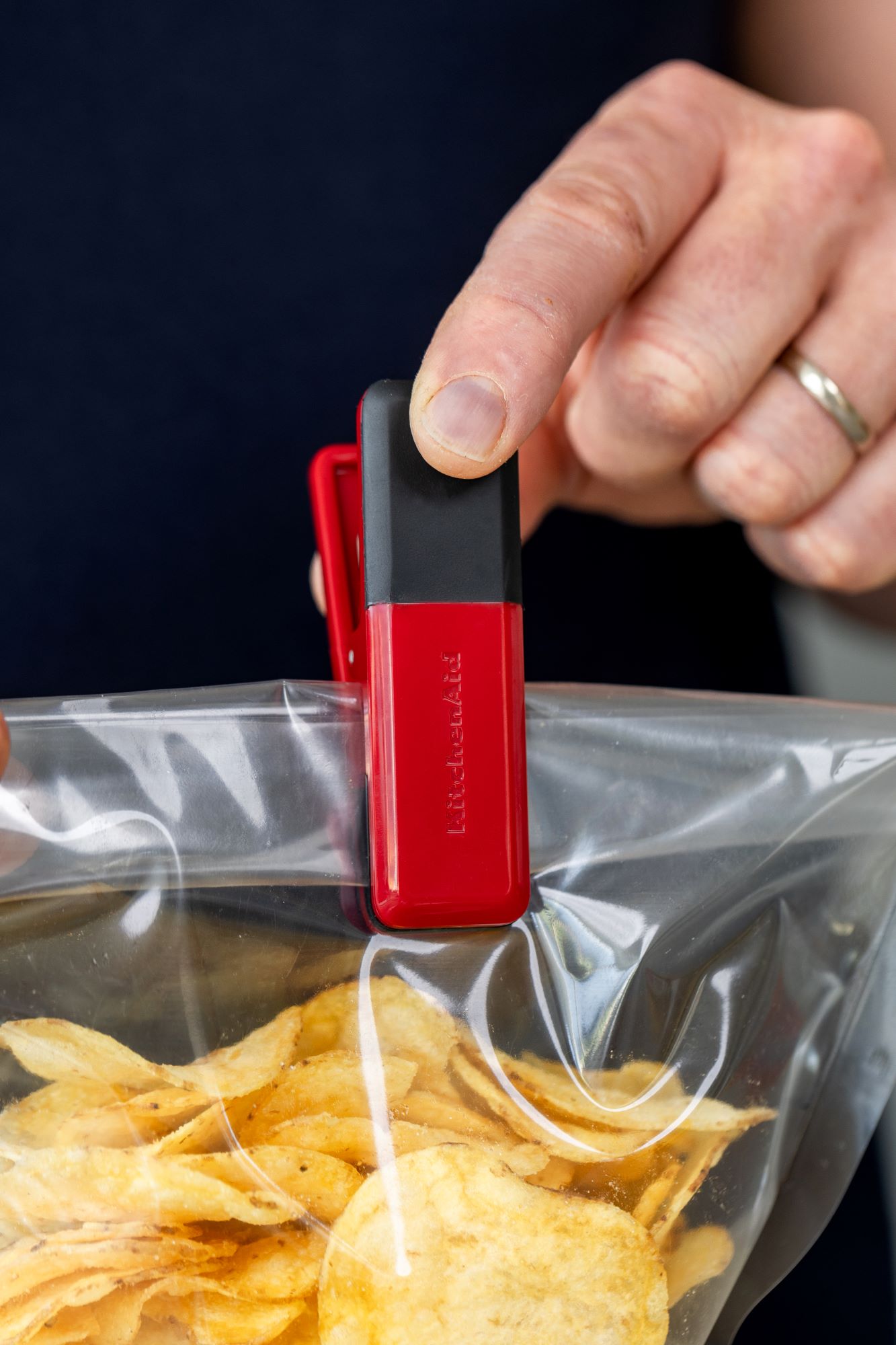 Aceste 4 clipsuri (cleme) pentru depozitarea alimentelor, de la brandul KitchenAid inchid in siguranta pungile de cereale, de chipsuri sau alte gustari.