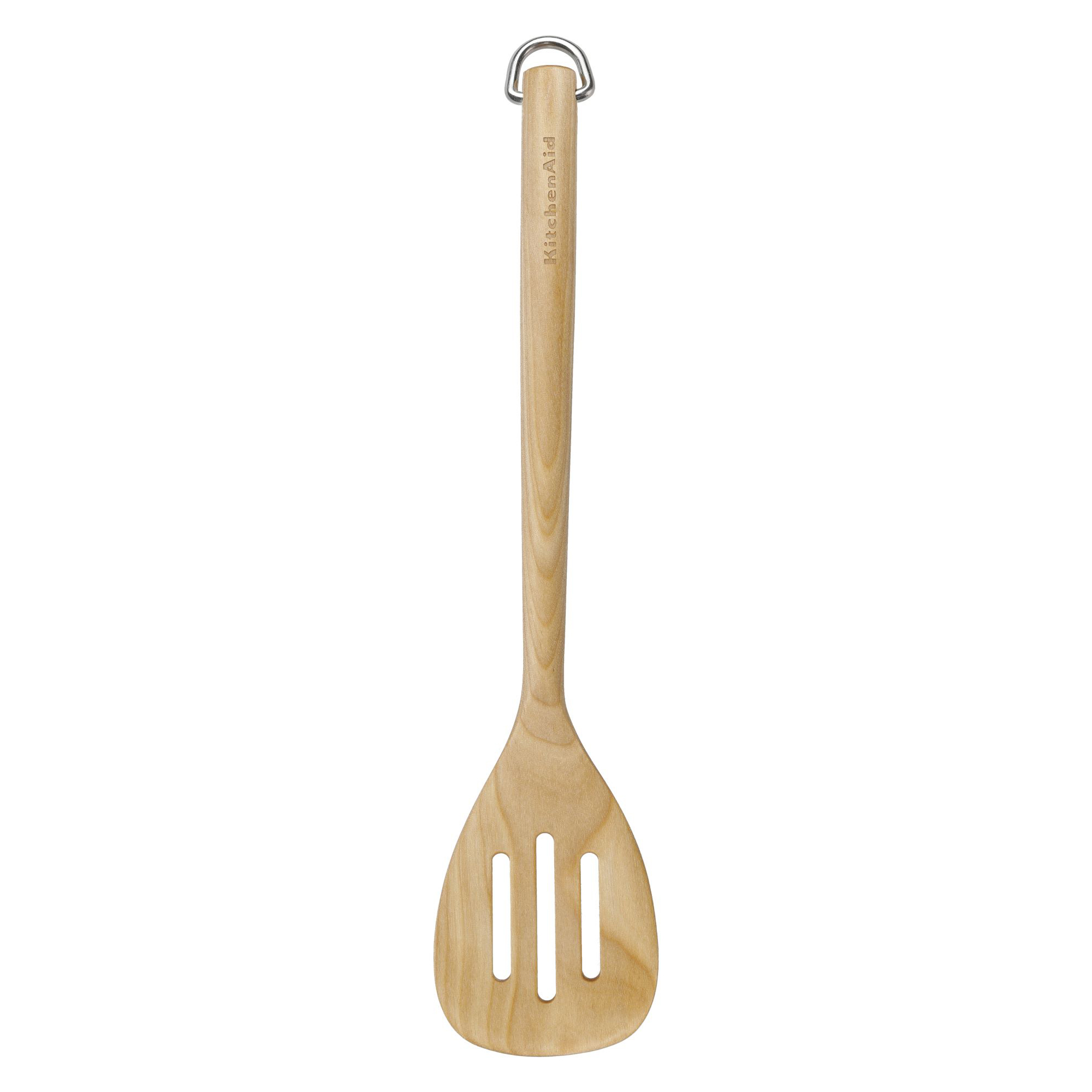 Acest set de ustensile KitchenAid, din lemn de mesteacan, format din 4 piese, include o lingura, o spatula cu fante, o lingura cu fante si o lingura pentru spaghetti, avand carlige de agatare din inox.