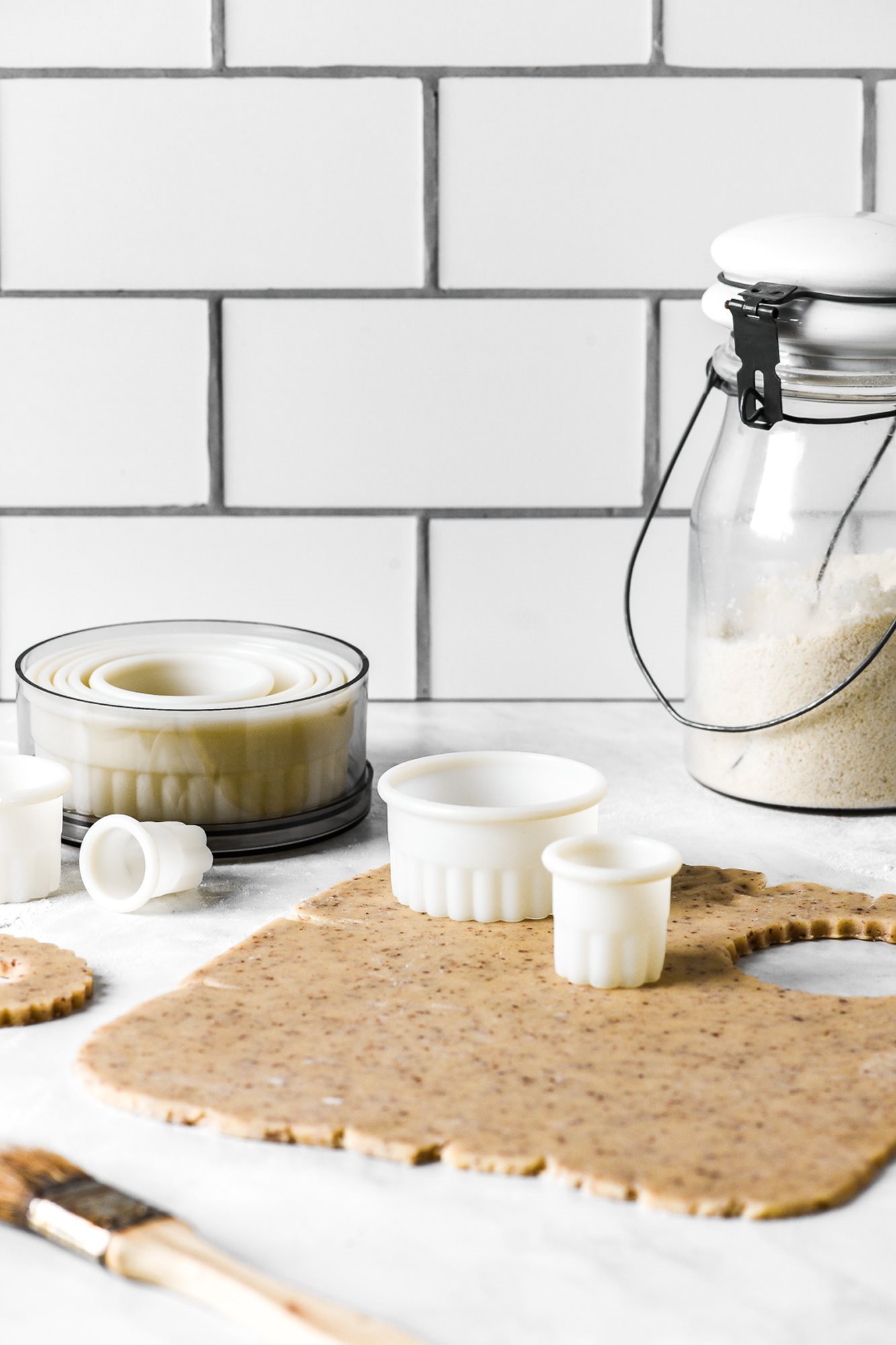 Set 9 cuttere rotunde canelate, utile pentru a prepara biscuiti, baze pentru tarte sau alte deserturi, marca de Buyer.