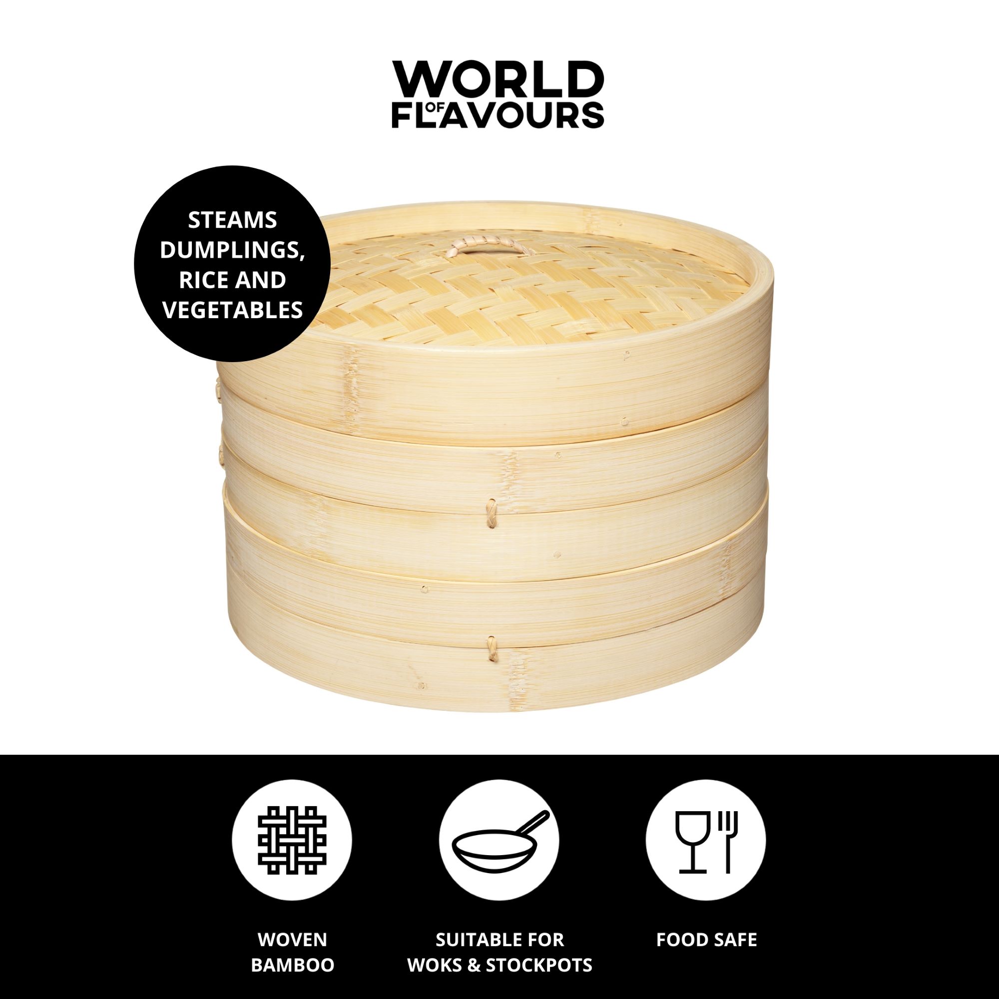 Set pentru gatit la aburi Kitchen Craft, din bambus, diametru 25 cm.