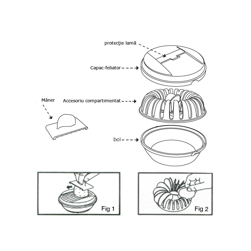 - accesoriu compartimentat din plastic termorezistent pana la 200°C, pentru feliile de cartofi.