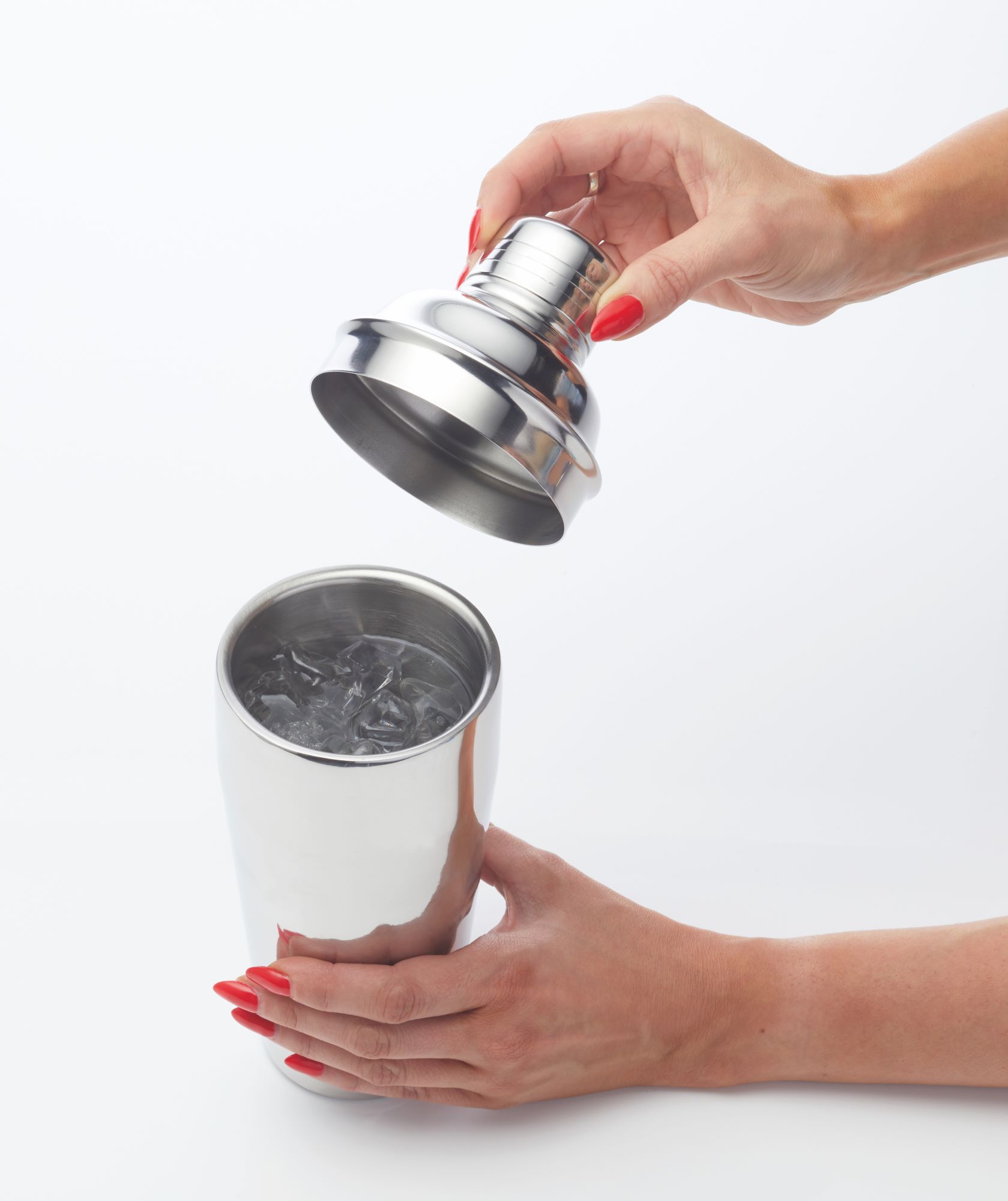 Este prevazut cu sita pentru strecurare, retinand pulpa de fructe sau gheata nedorita. Capacelul detasabil poate fi folosit pentru a masura componentele lichide ale cocktailurilor.