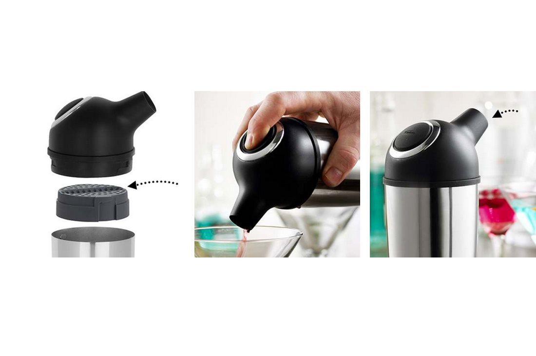 Produsul dispune de un capac ce are integrata o sita si un buton pentru turnarea in pahare. Astfel, shakerul poate fi utilizat cu usurinta cu o singura mana.