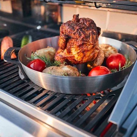 Suportul culinar modular pentru pui intreg din otel inoxidabil este un dispozitiv practic 2 in 1. Compatibil cu gratarul din fonta modular sau orice alt gratar Enders Switch Grid, GBS Weber, CMS Campingaz, precum si gratarele Landmann si Broil King.