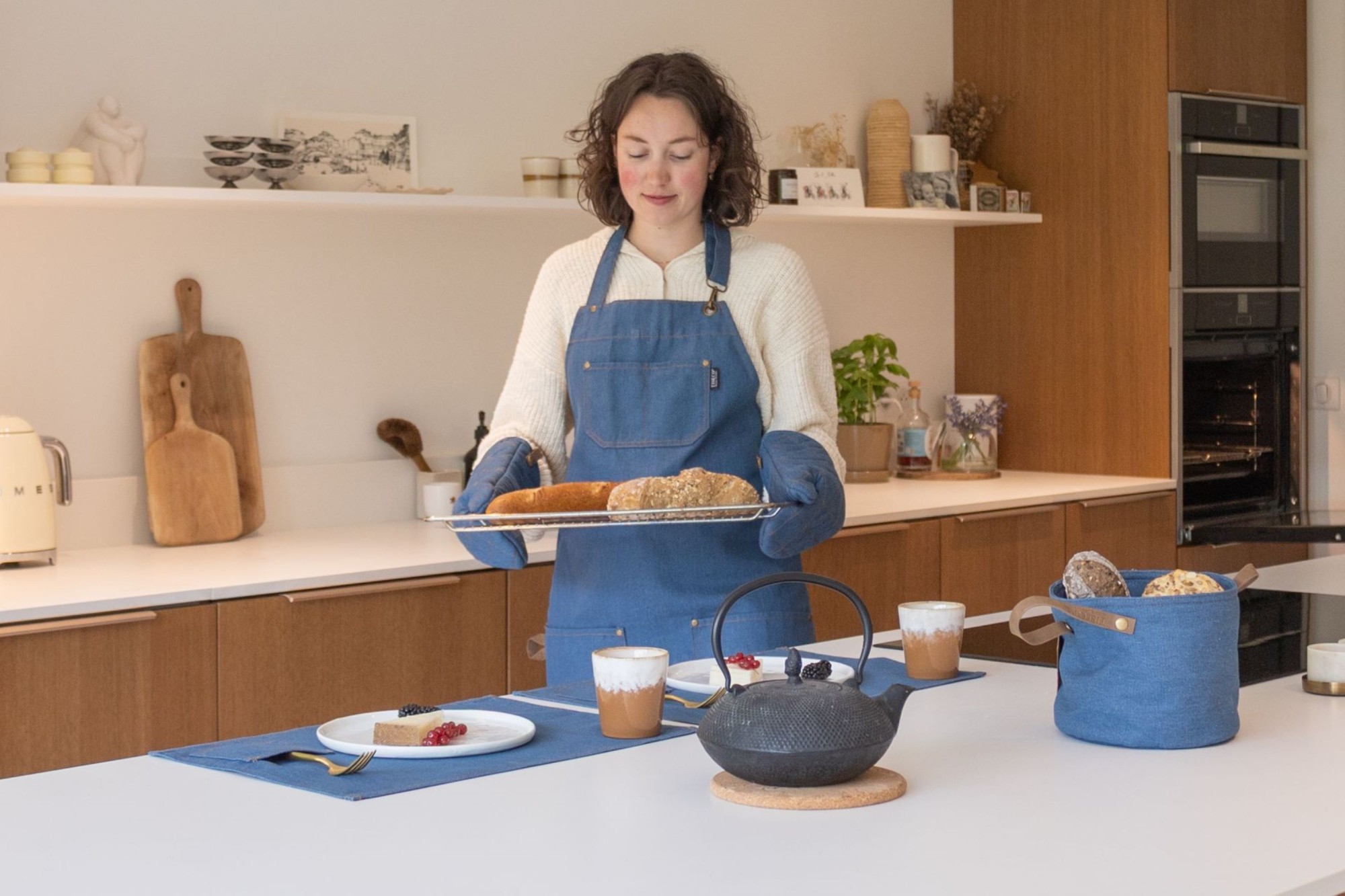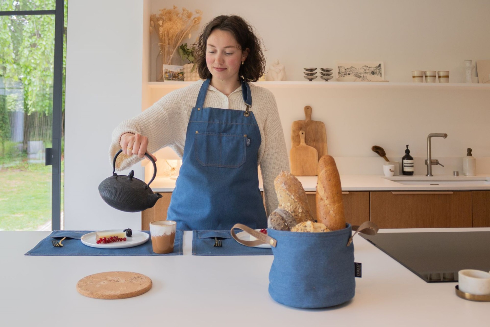 Fabricat din denim reciclat, sortul Indigo, marca Tiseco este un accesoriu elegant si sustenabil pentru momentele tale creative in bucatarie, studio sau atelier.