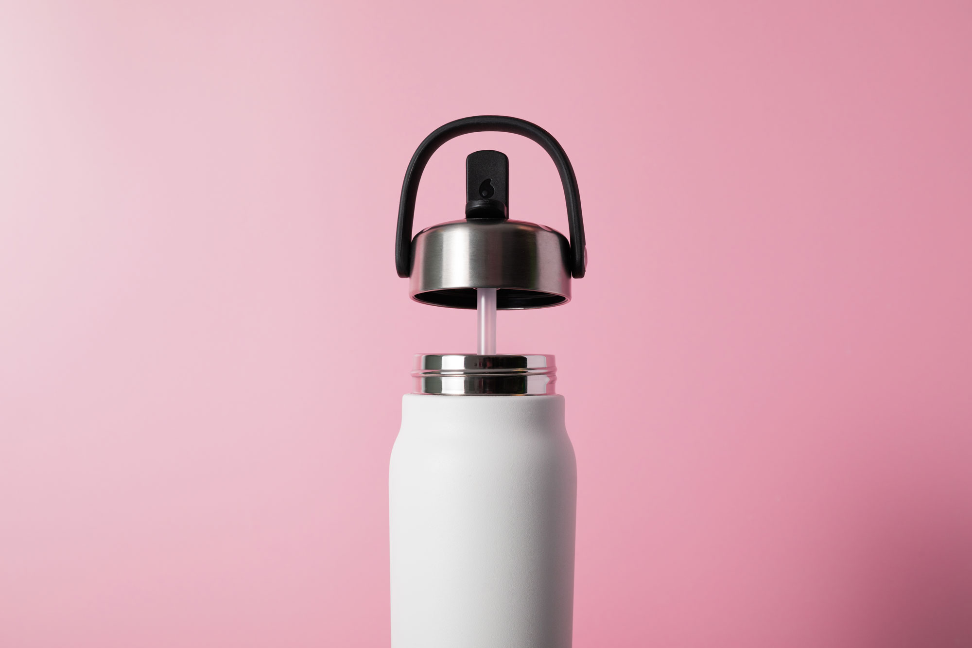 Sticla termos pentru bauturi, cu pai incorporat, capacitate 700 ml, fabricata din inox 18/8, marca S’well.