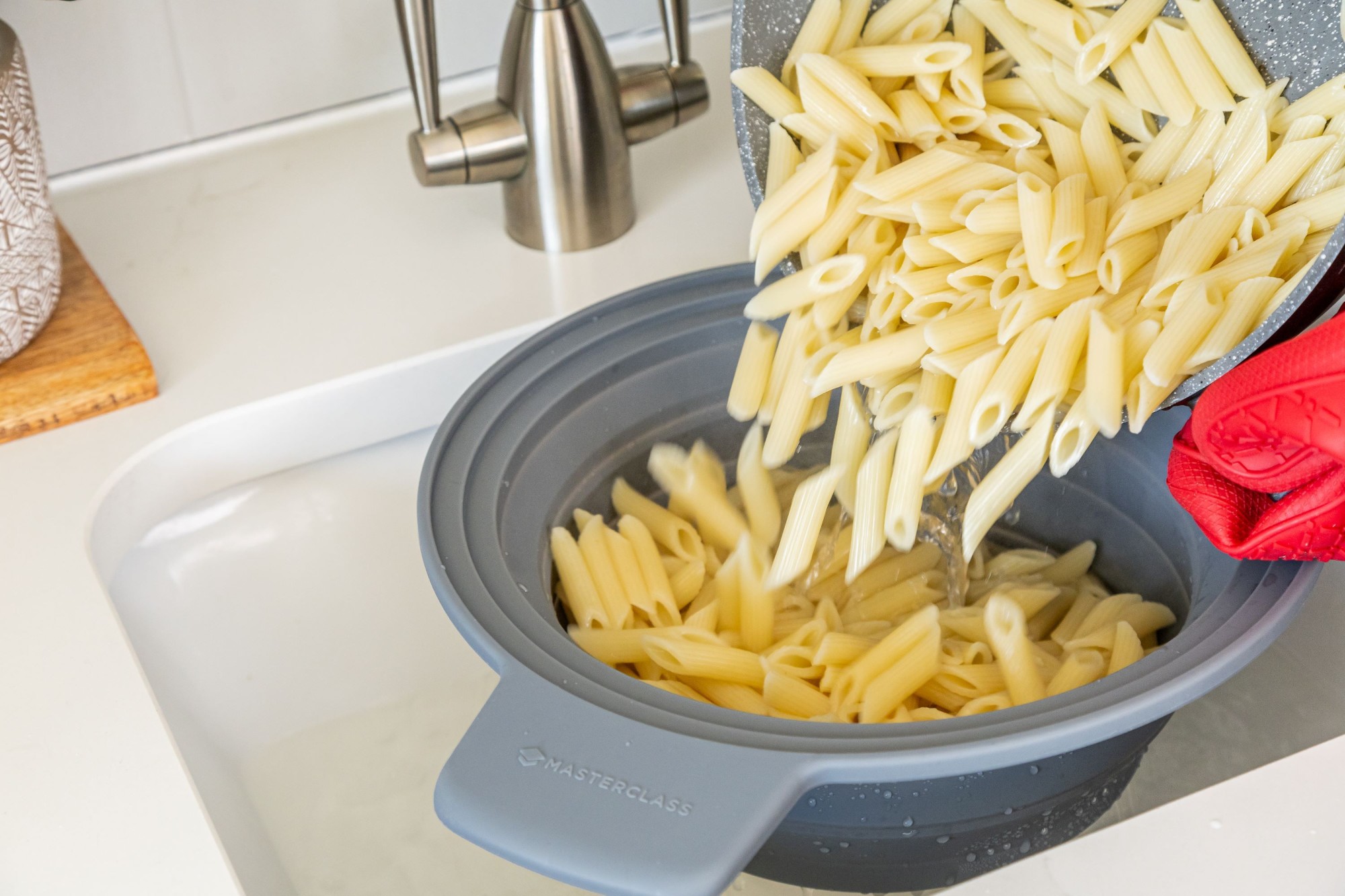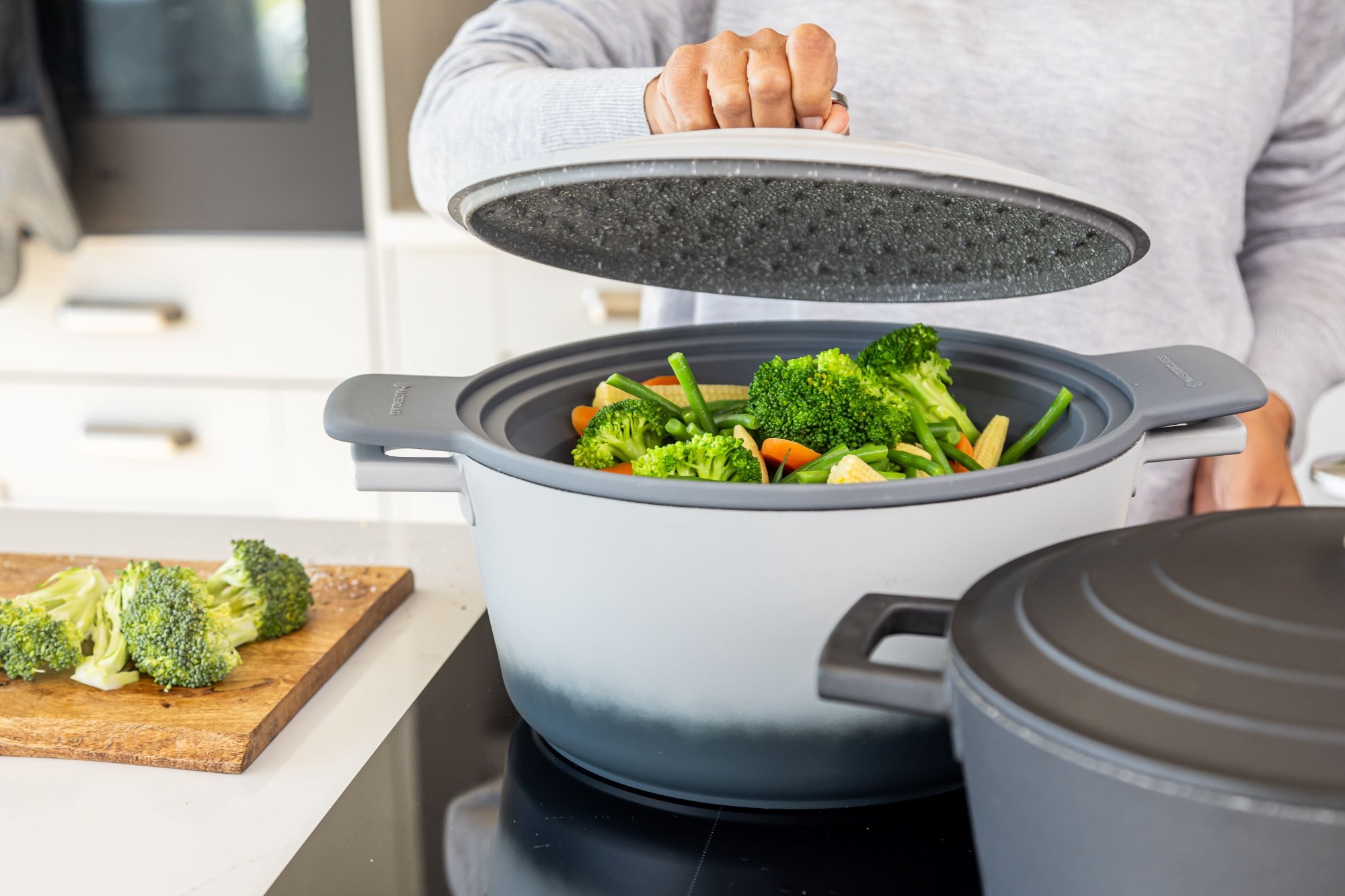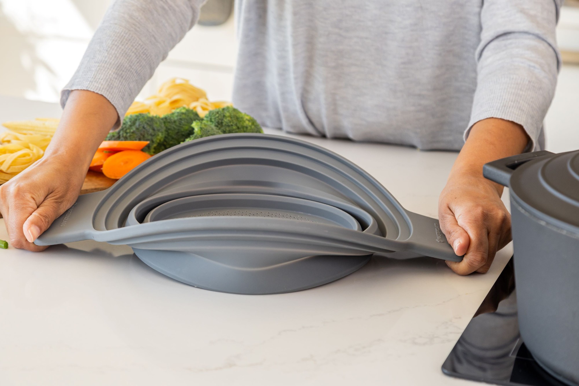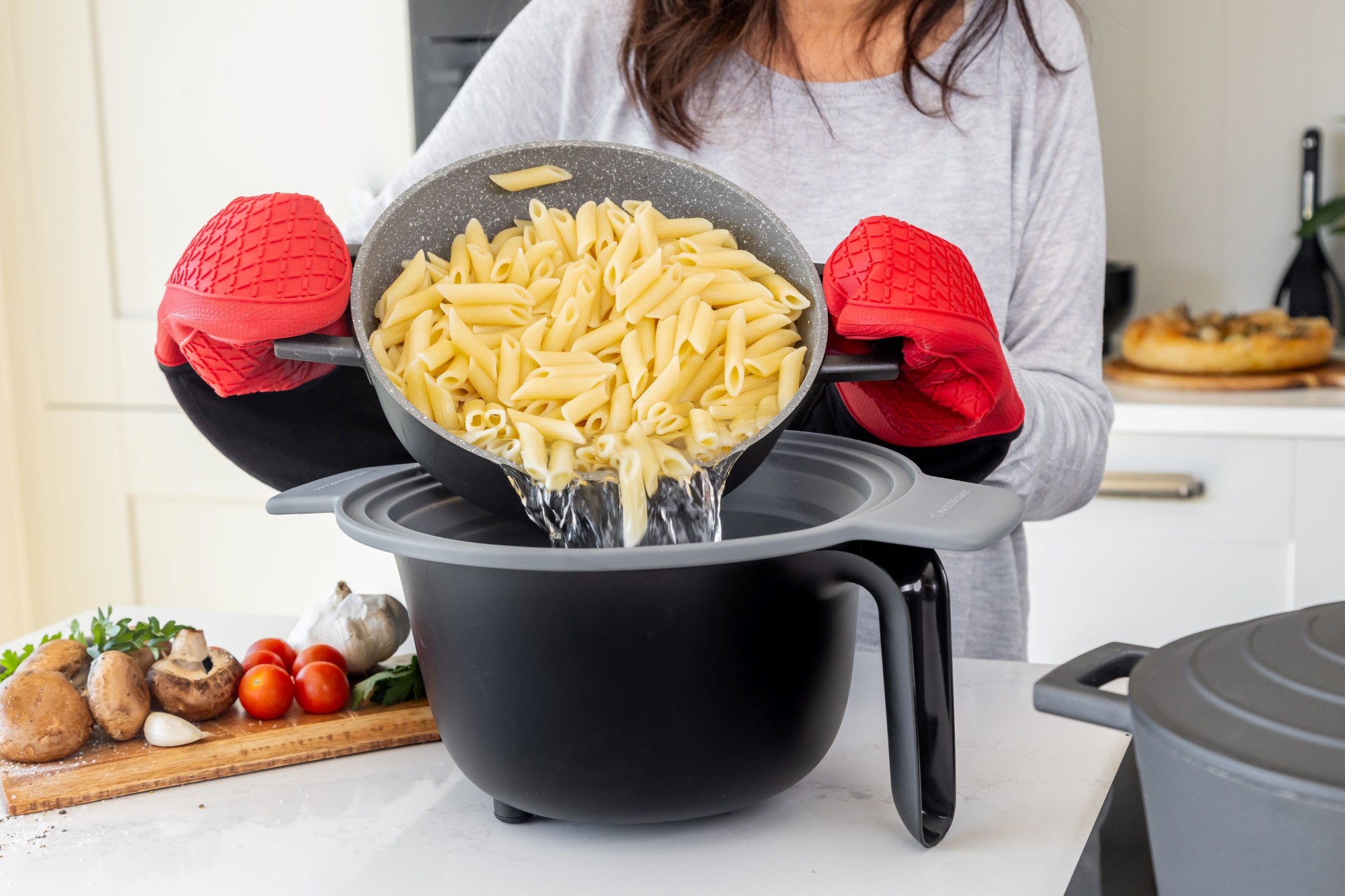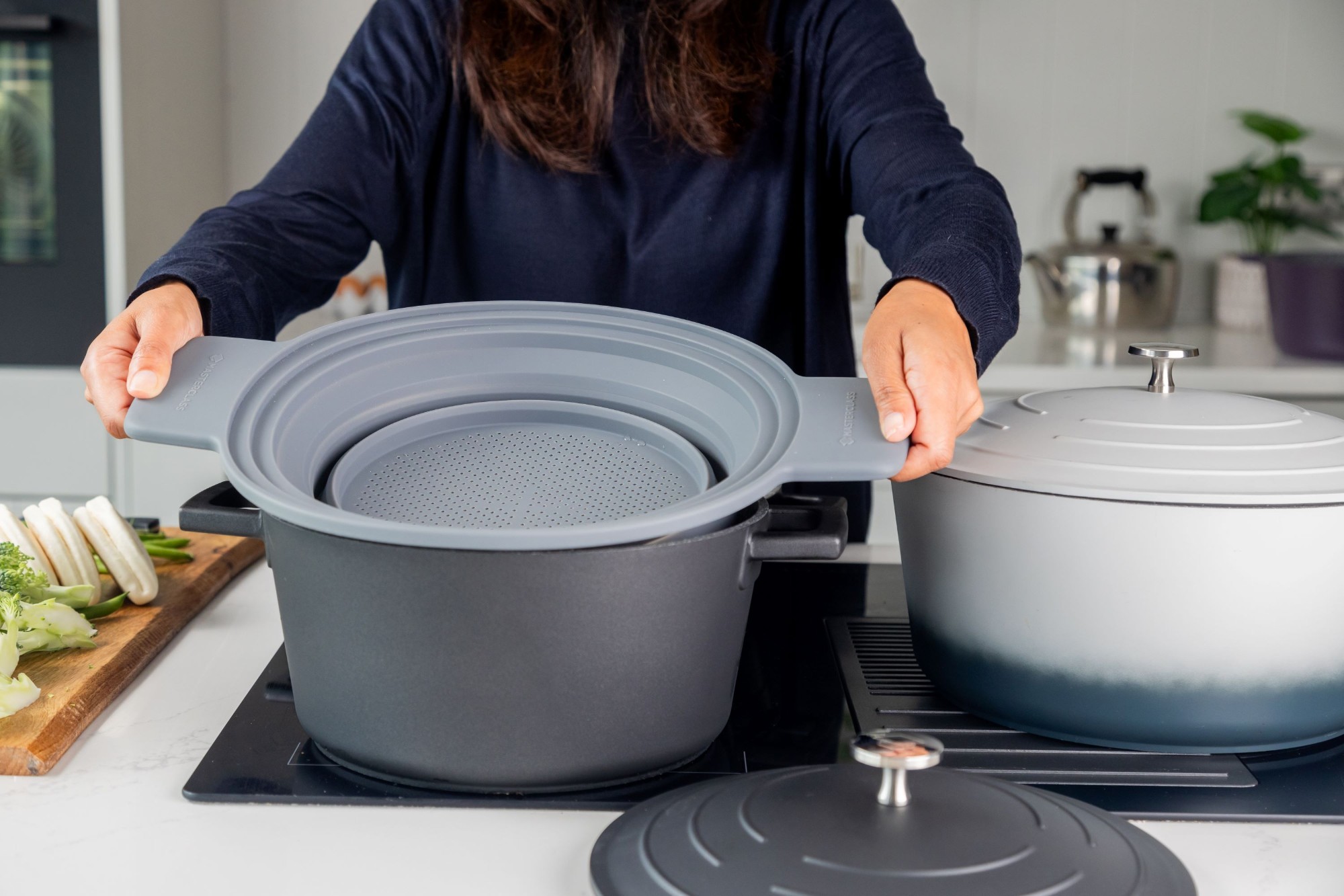 De asemenea, strecuratoarea este conceputa pentru a incapea in vasele din aluminiu turnat MasterClass, dar si cu alte vase care au diametrul cuprins intre 24-30 cm.