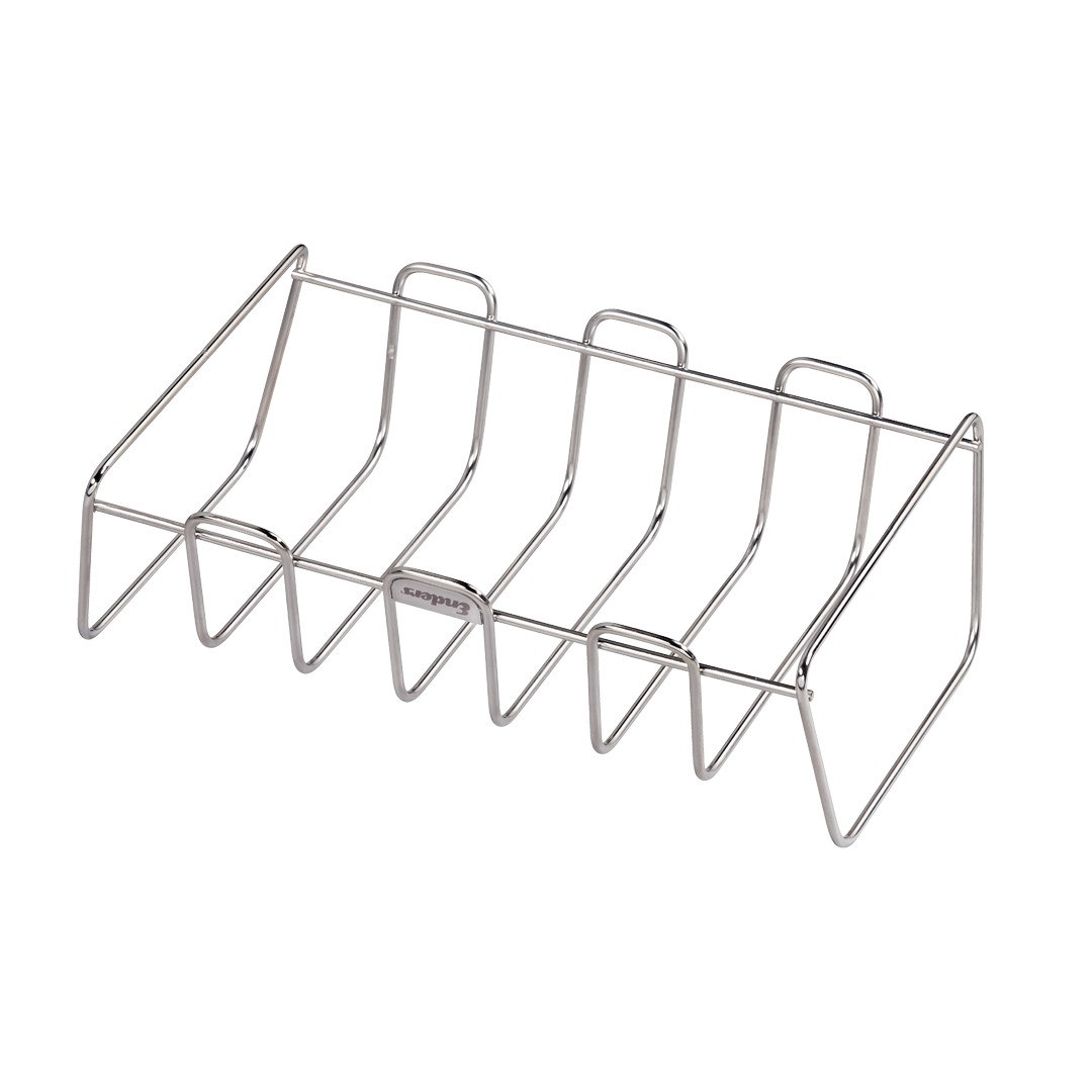 Gatirea coastelor si fripturilor la gratar este o joaca de copii cu acest suport practic din otel inoxidabil pentru coaste si fripturi. Suportul are spatiu pentru pana la sapte coaste si poate fi folosit si drept cos de friptura atunci cand este intors invers. Daca nu va puteti satura de coastele la gratar, afumati-le lent si tineti-le pe gratar folosind un suport pentru coaste. Acesta va mentine preparatele la inaltime, ceea ce va garanteaza ca veti obtine intotdeauna acea aroma caracteristica de afumare fara a fi nevoit sa supravegheati indeaproape coastele. Prin combinare cu un vas de gatit, puteti colecta lichidul care se scurge din carne sau, prin combinatie cu aschii de afumare puteti foarte bine afuma coaste si fripturi.