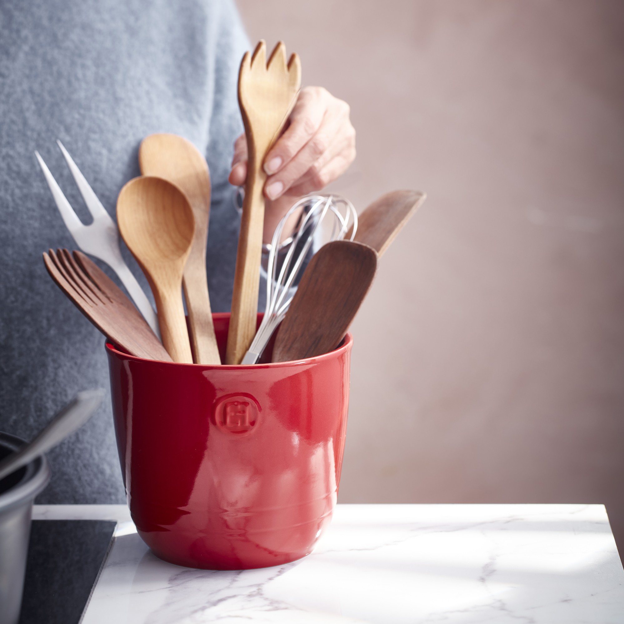 Suport pentru ustensile de bucatarie, marca Emile Henry, diametru 17 cm si inaltime 16,5 cm, fabricat din ceramica HR®.
