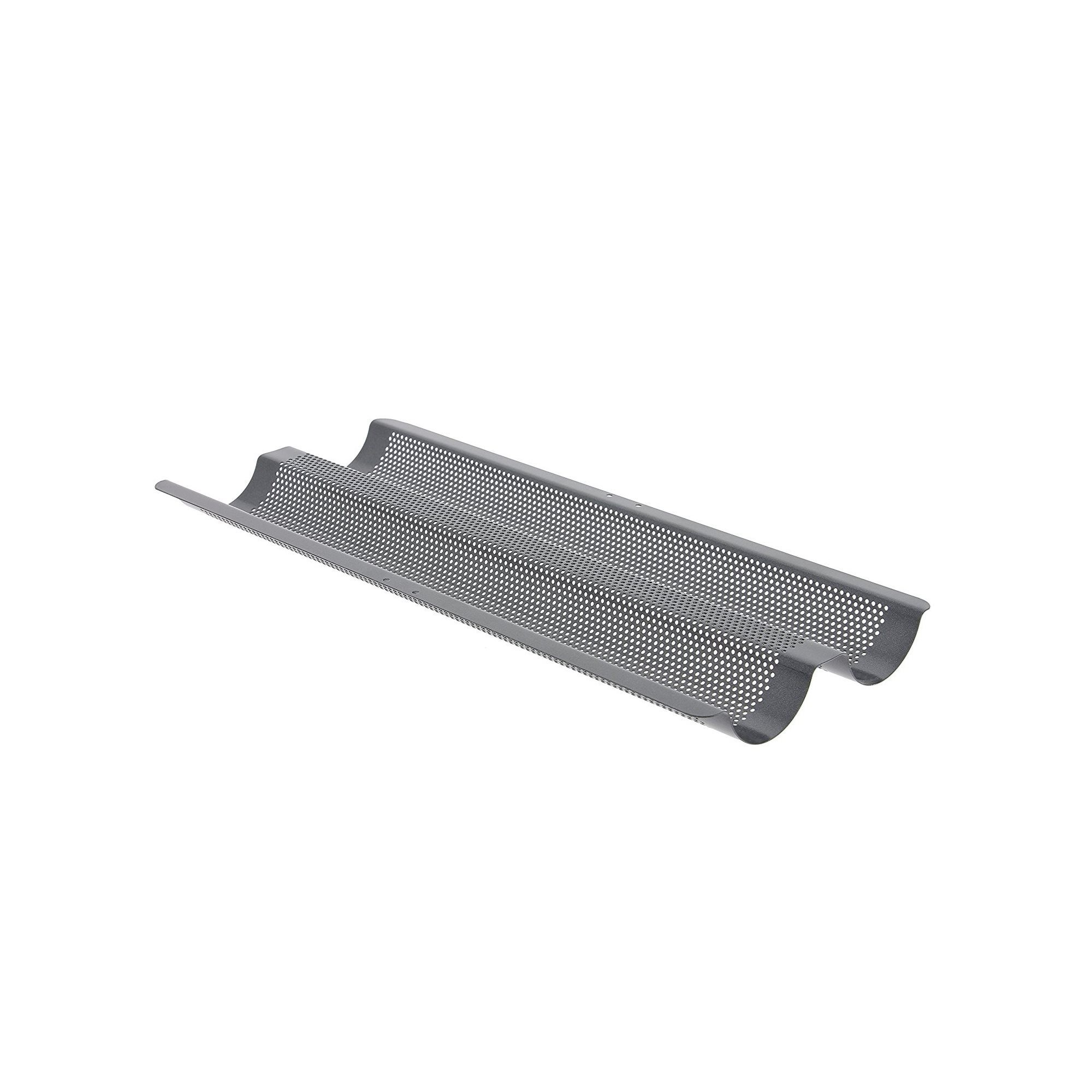 Tava preparare baghete, marca de Buyer, dimensiuni 37 x 16,2 x 2,5 cm, din otel, cu strat antiadeziv. Este ideala pentru coacerea a 2 baghete frantuzesti sau incalzirea baghetelor deja pregatite, dar si pentru a crea forma curbata a biscuitilor tuile sau pentru a crea diverse texturi de ciocolata.