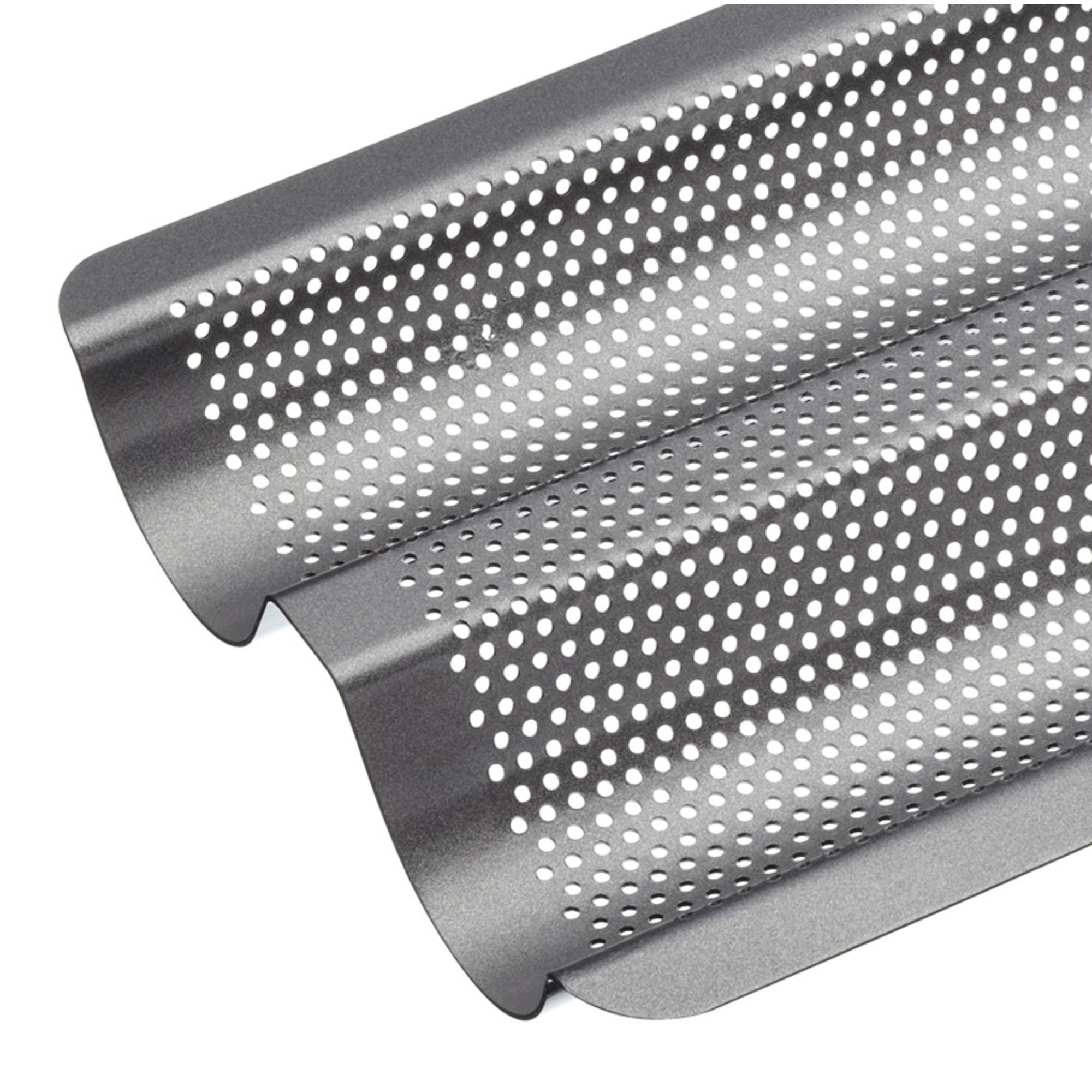 Tava preparare baghete, marca Kitchen Craft, dimensiuni 39 x 16,5 x 2,5 cm, din otel, cu strat antiaderent dublu Quantum II. Este ideala pentru coacerea baghetelor frantuzesti sau incalzirea baghetelor pre-gatite.