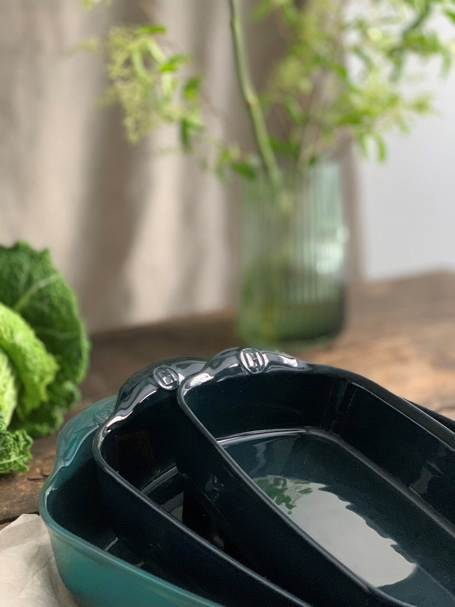 Tava rectangulara pentru cuptor din aceasta colectie este ideala pentru prepararea unei mese rapid. Datorita materialului rezistent la temperaturi ridicate din care este confectionat, si anume ceramica de inalta calitate, vasul poate trece imediat de la temperaturi de pana la - 20°C la temperaturi de peste 270°C, atat la cuptor cat si la microunde. Forma sa rectangulara cu manere permite o manevrare usoara, si, totodata, designul sau viu colorat va aduce mai mult stil in bucataria ta!