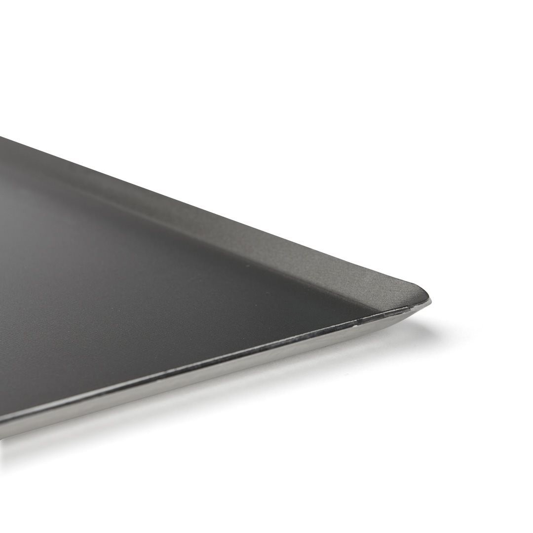 Tava dreptunghiulara cu margini oblice, marca de Buyer, din aluminiu gros, acoperita cu un strat antiaderent Choc 5.