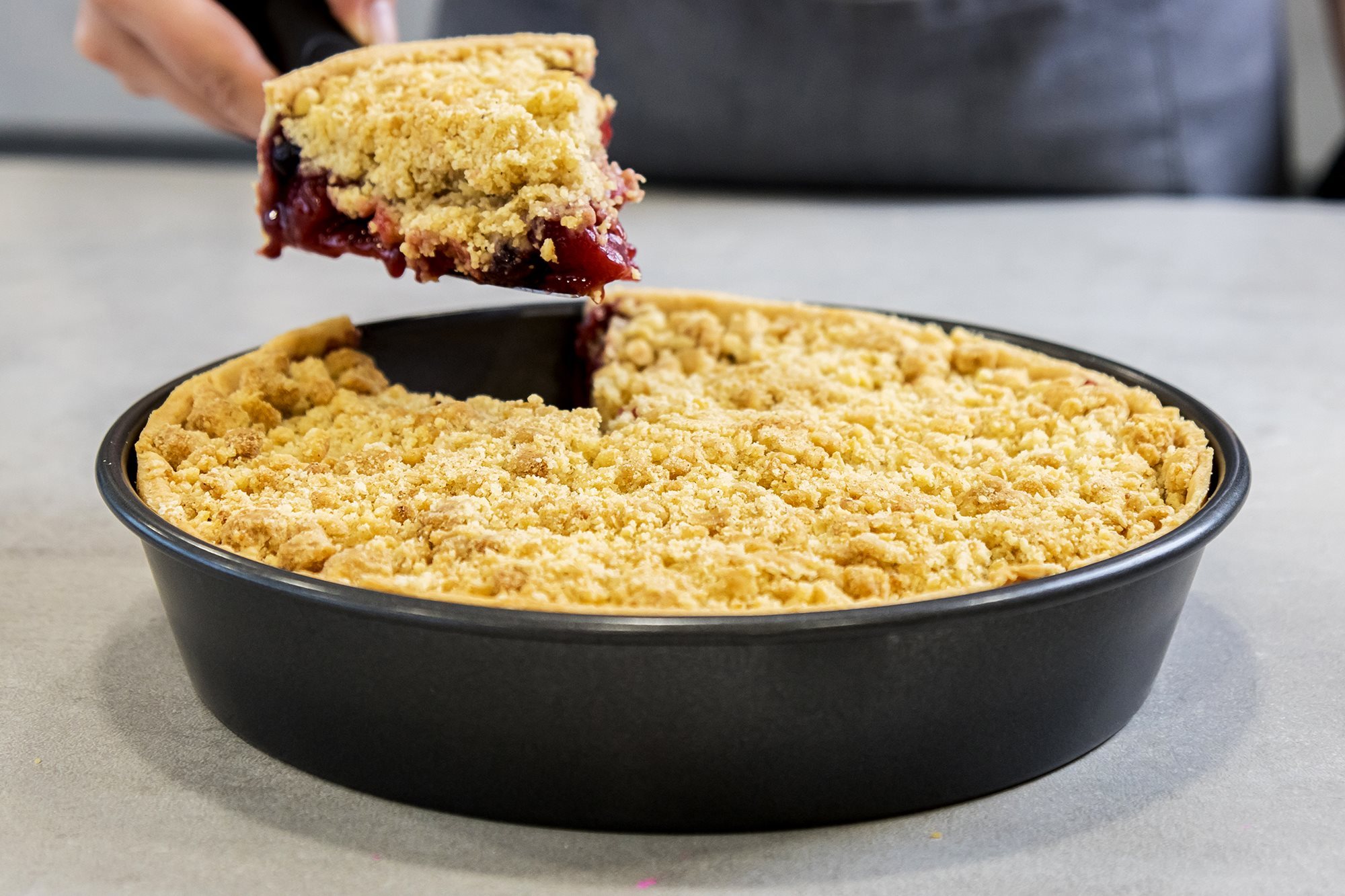 Din otel rezistent, de 1 mm, prevazuta cu un strat dublu antiadeziv care permite distribuirea uniforma a caldurii si o detasare usoara, fara lipire, a preparatului, tava cu un diametru de 23 cm este pregatita sa faca fata oricarei provocari la care o supui.