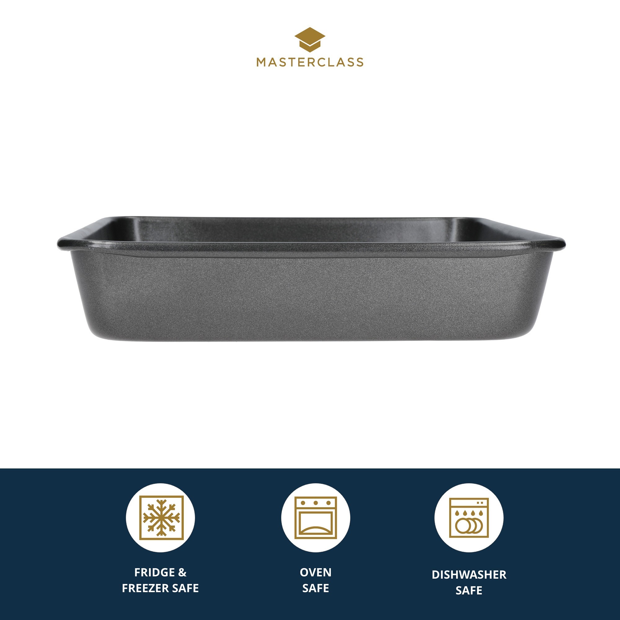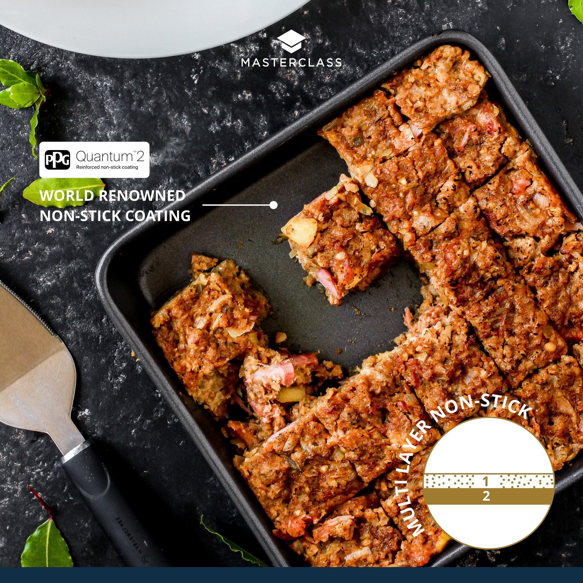 Indiferent daca vreti sa coaceti brownies, sa gatiti lasagna sau sa prajiti bucati mici de carne de vita, aceasta tava patrata antiaderenta din colectia MasterClass, marca Kitchen Craft, cu dimensiunea 23 x 5 cm va permite sa gatiti retetele preferate de fiecare data.