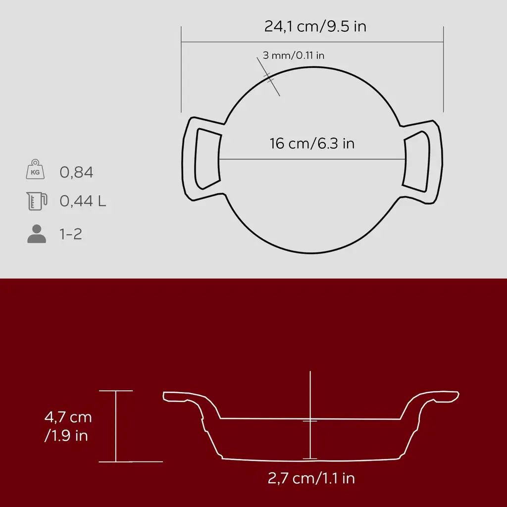Tava rotunda, marca Lava, diametru 16 cm, fabricata din fonta, capacitate 0,44 l.