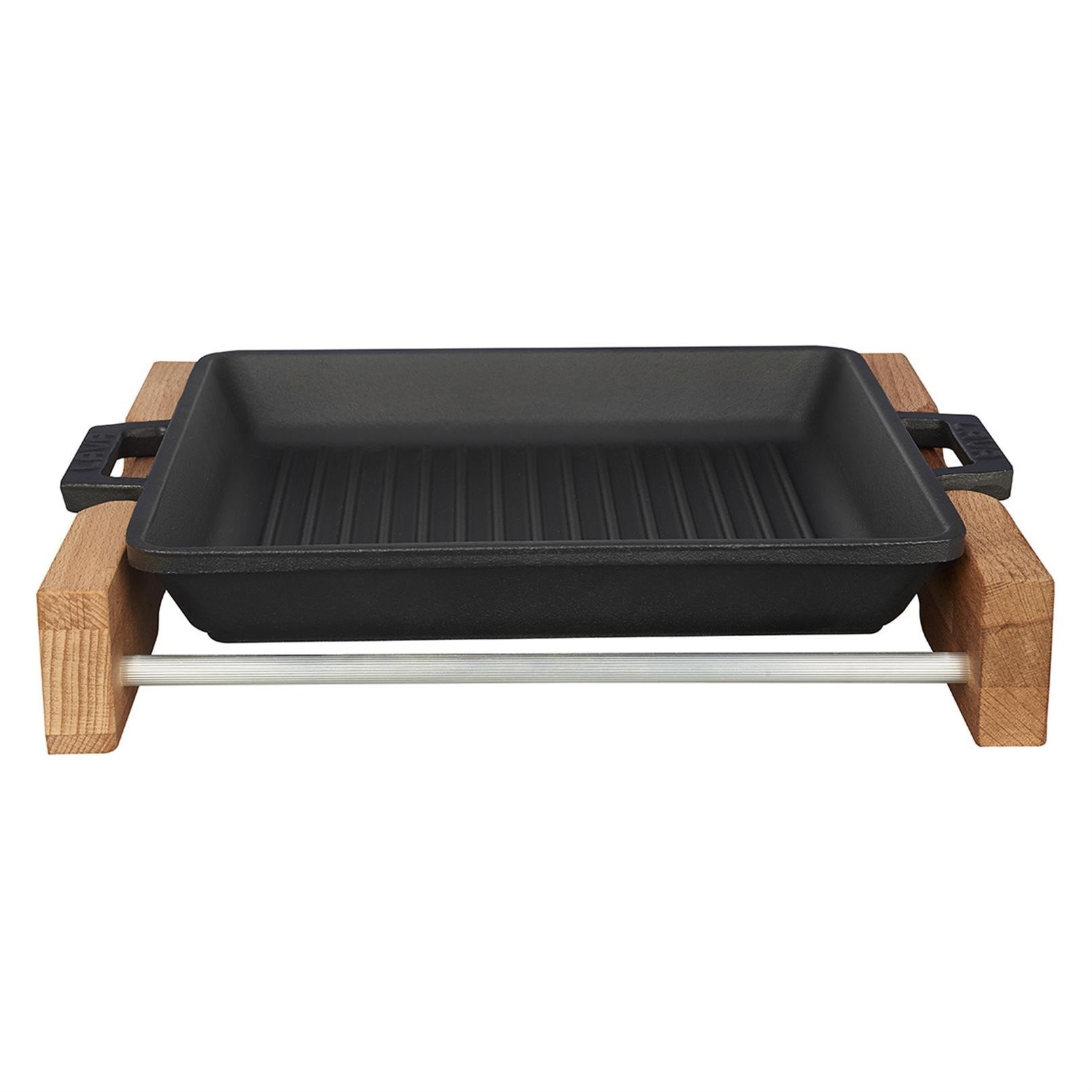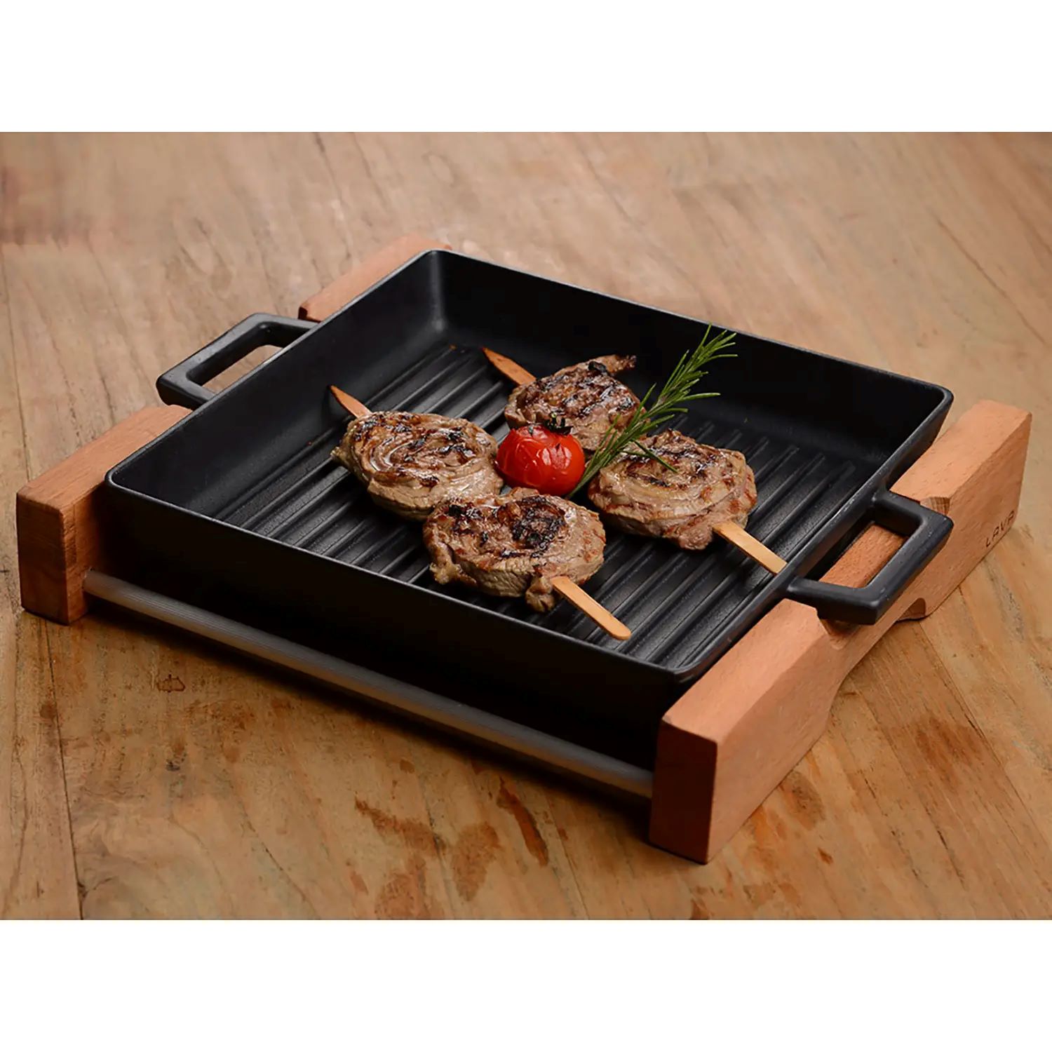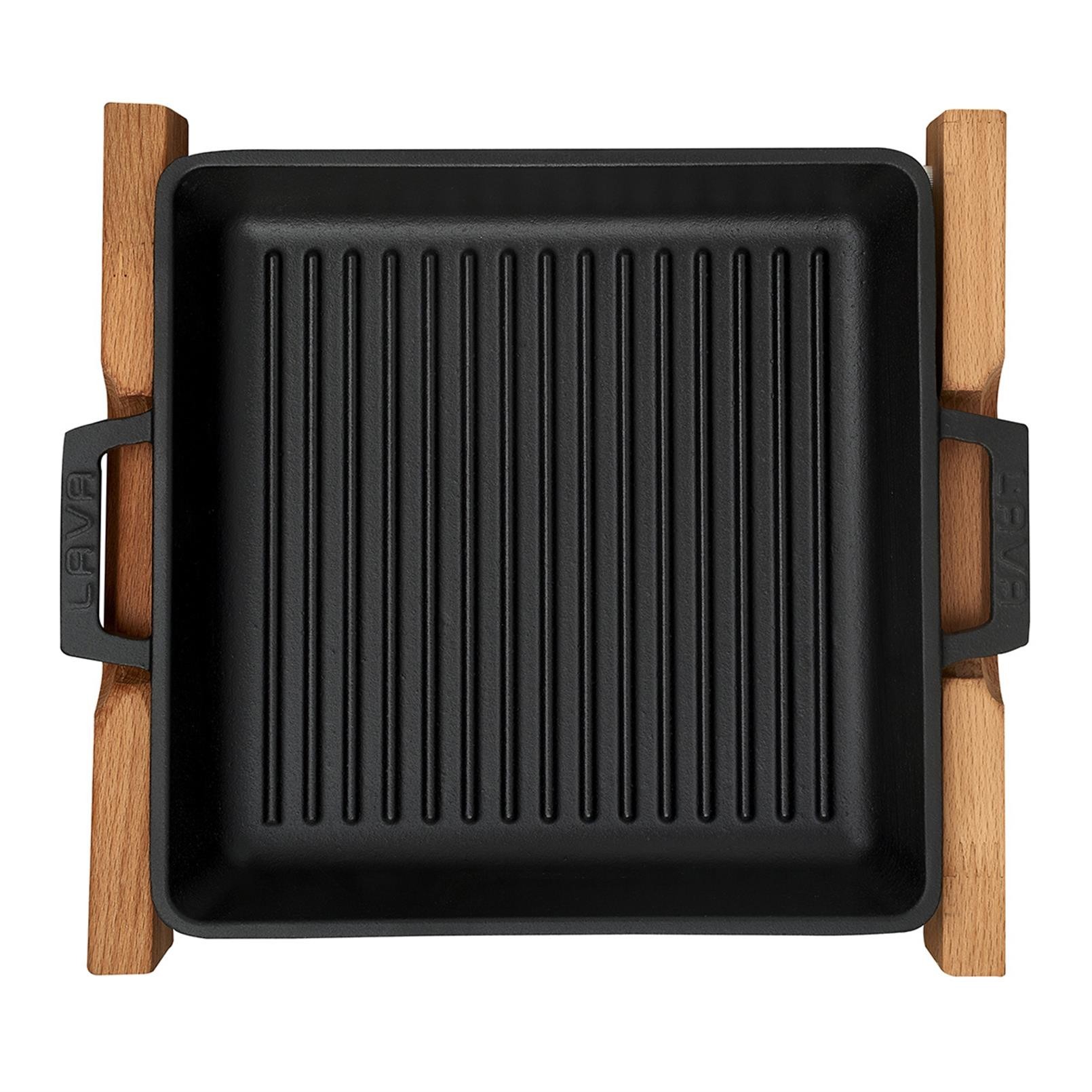 Tava grill cu suport din lemn, marca Lava, dimensiuni 26 x 26 cm, fabricata din fonta.