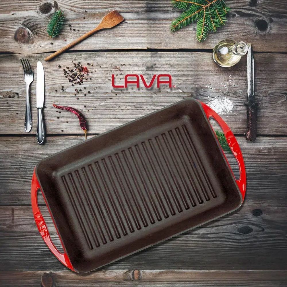 Tava grill, cu dimensiunile interioare 22 x 32 cm, marca Lava, fabricata din fonta.