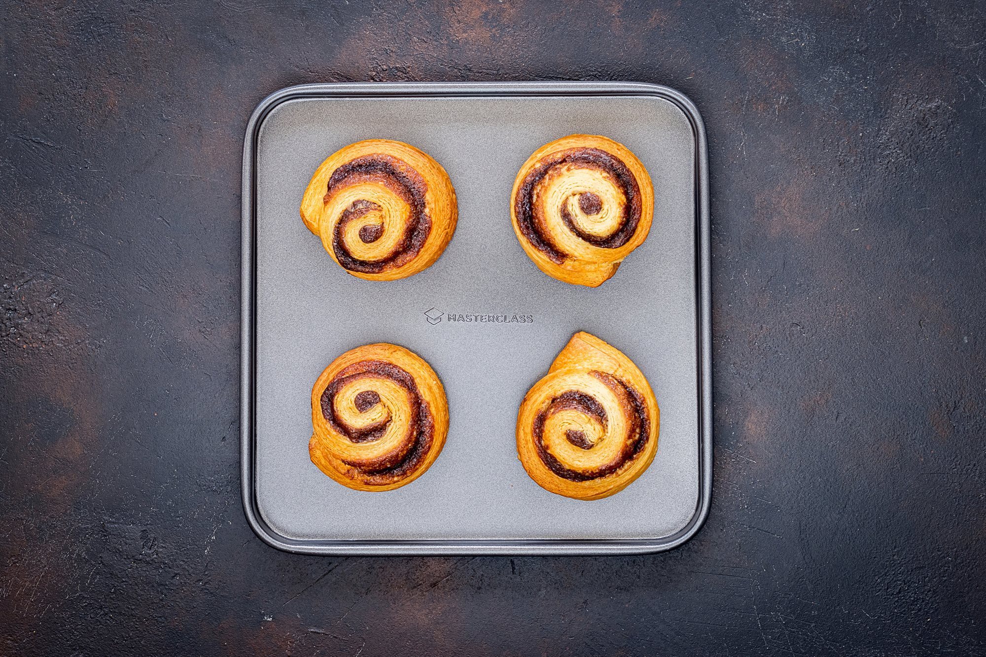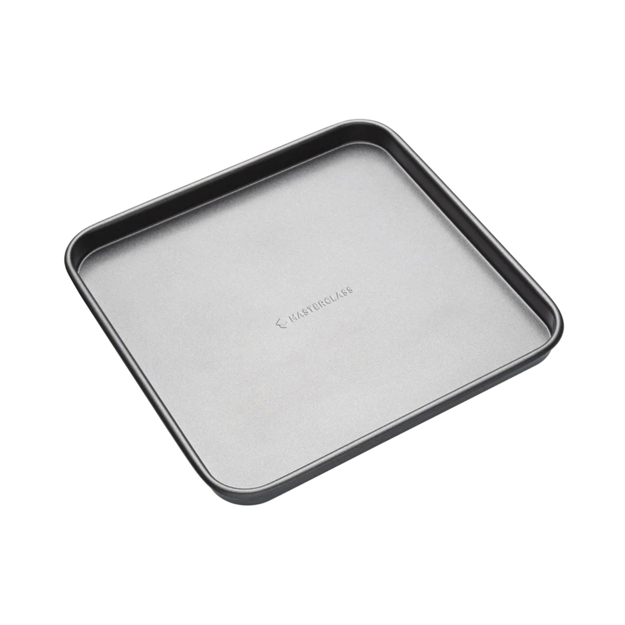 Tava patrata pentru cuptor, marca MasterClass, dimensiune 26 x 26 cm, fabricata din otel comercial de 1 mm, cu strat dublu antiaderent, ideala pentru a prepara biscuiti si prajituri de casa.