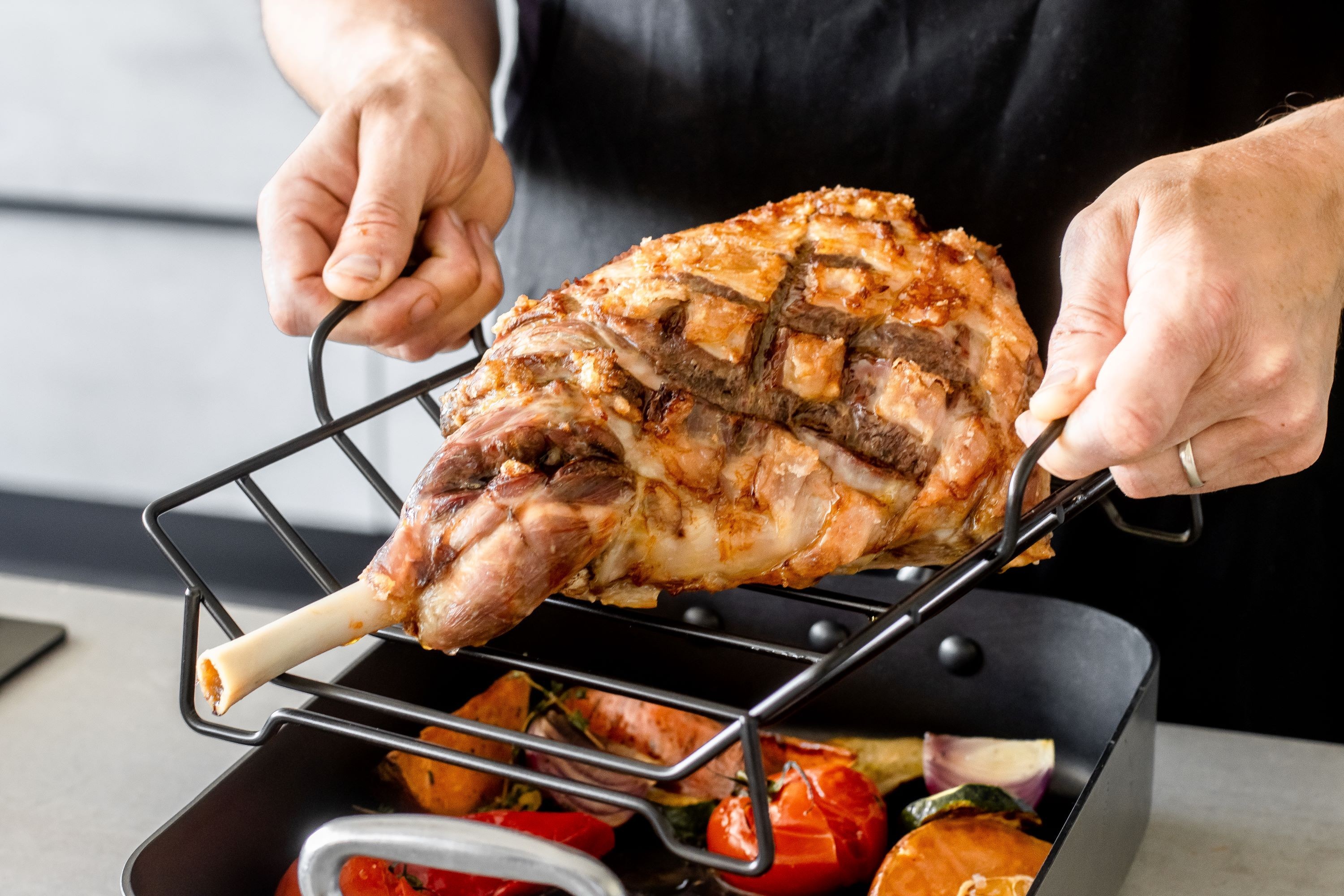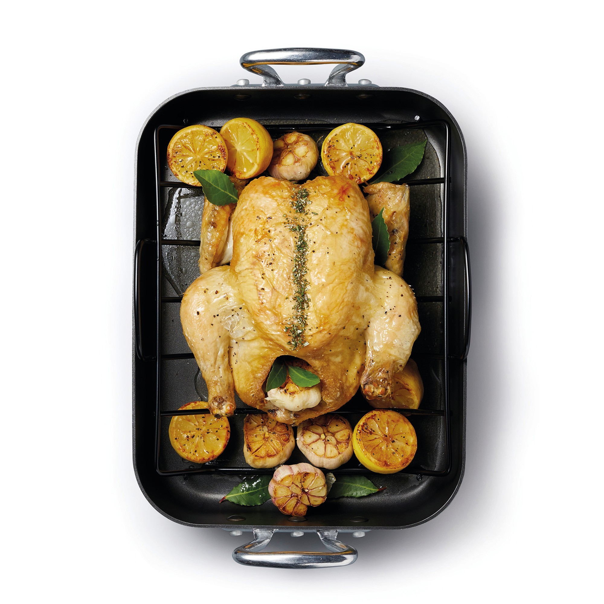 Aceasta tava cu manere practice este alegerea perfecta pentru a coace uniform fripturi din toate tipurile de carne, fara a fi nevoie sa utilizati multe grasimi. Gratarul va permite scurgerea grasimilor in tava si carnea se va gati uniform.