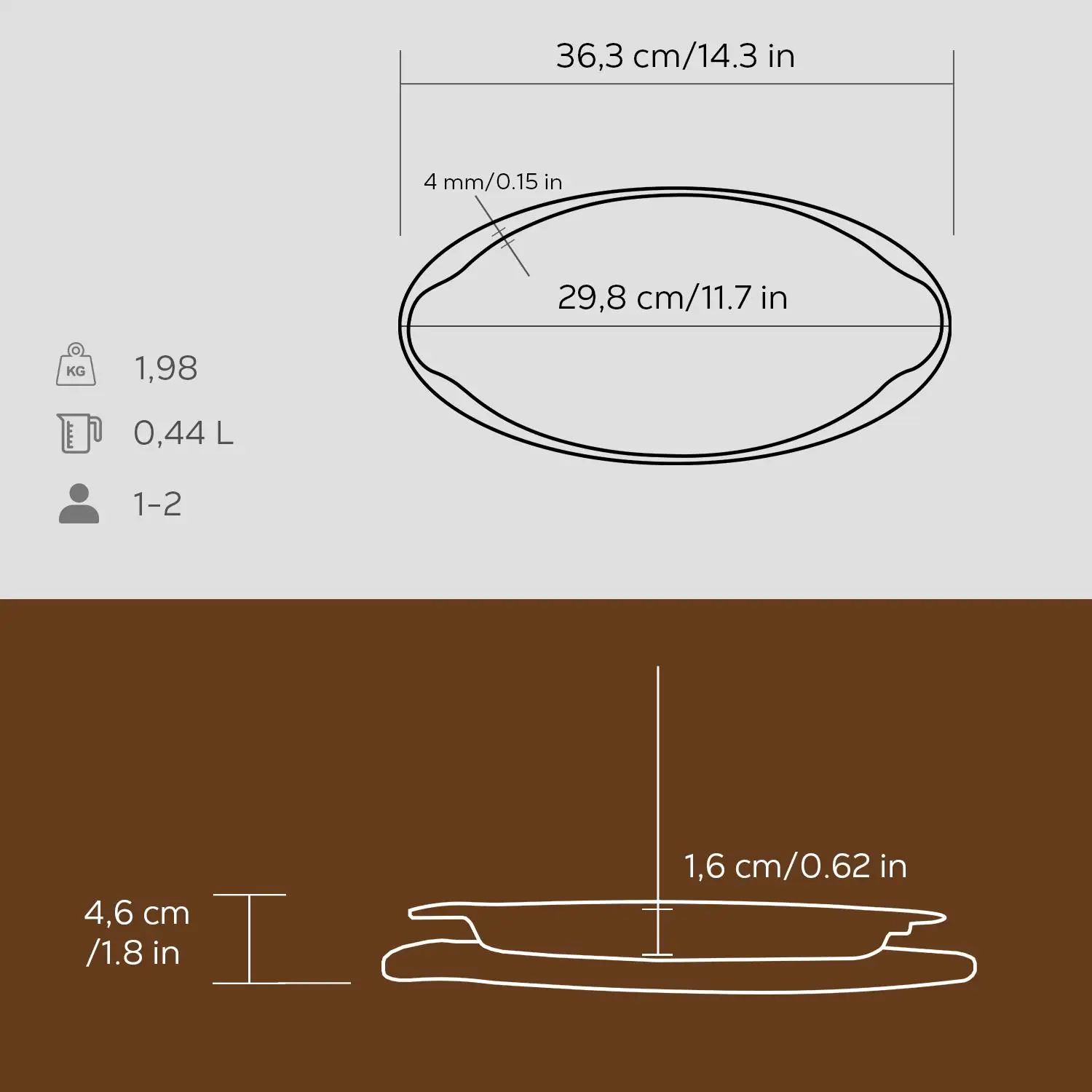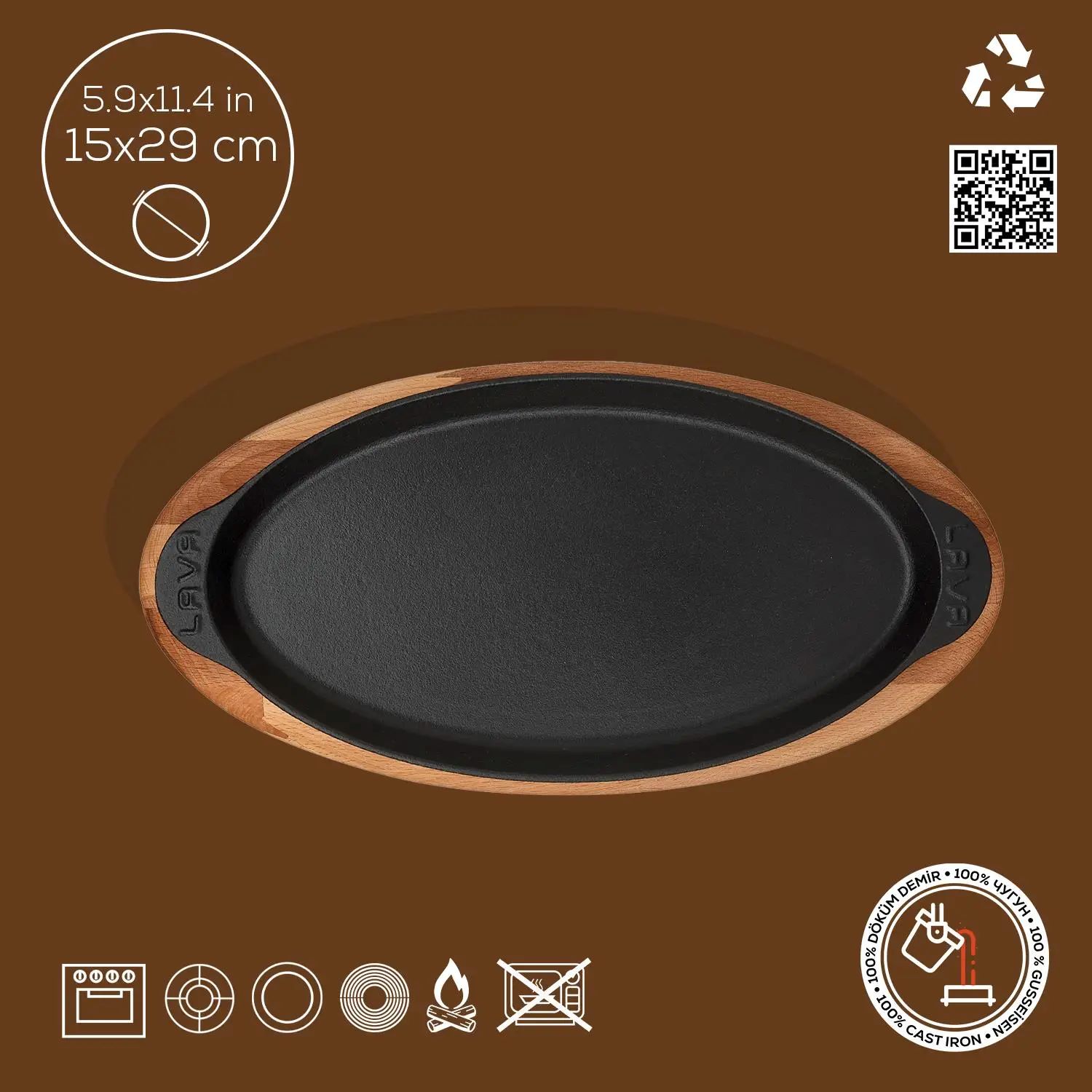 Tava pentru peste cu platou servire, marca LAVA, dimensiuni 29 x 15 cm, capacitate 0,55 L, fabricata din fonta.