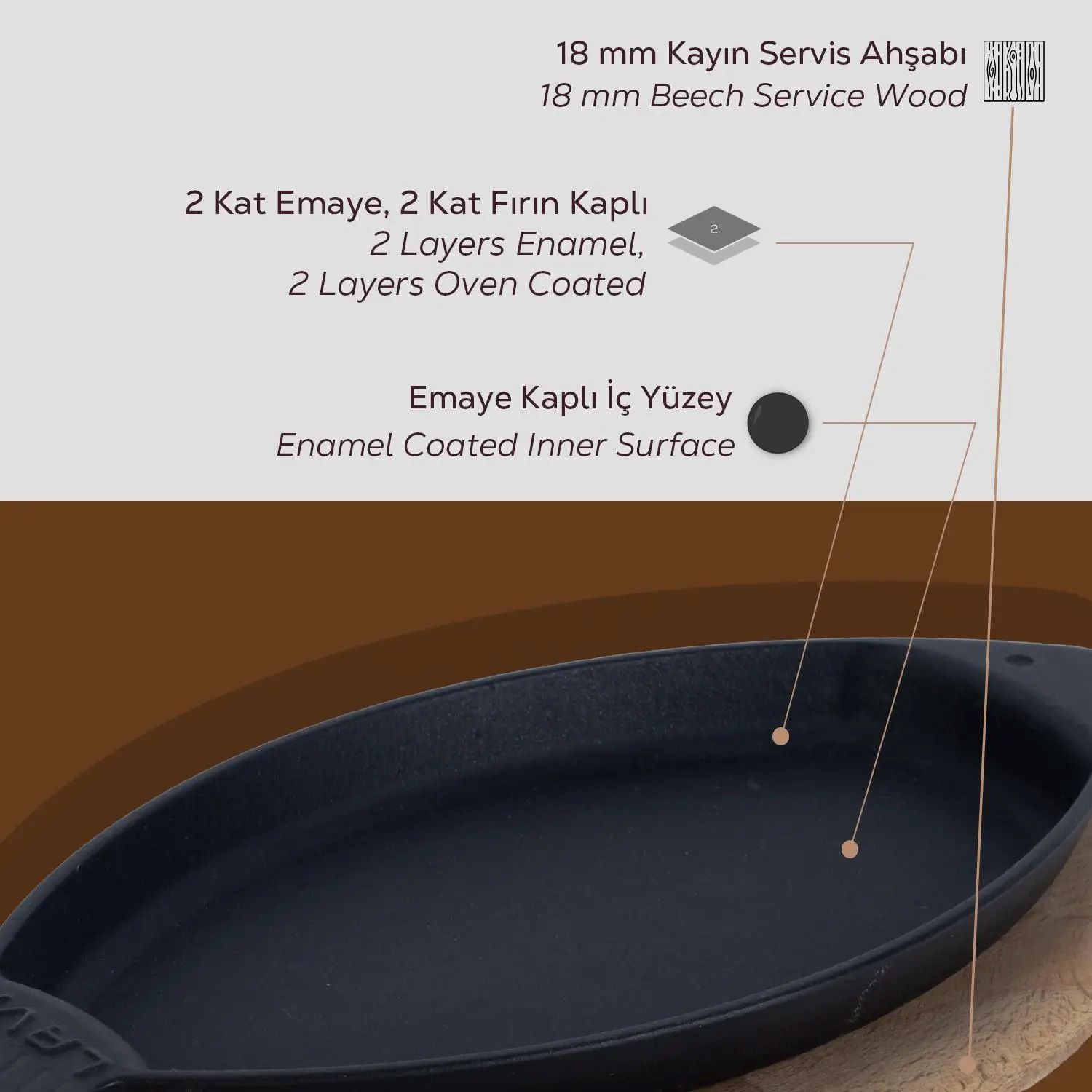 Peretii vasului au o grosime de 3,5 mm iar in interior, acesta prezinta un strat de email negru ce faciliteaza crearea unei suprafete antiadezive atunci cand se gateste folosind grasimi.