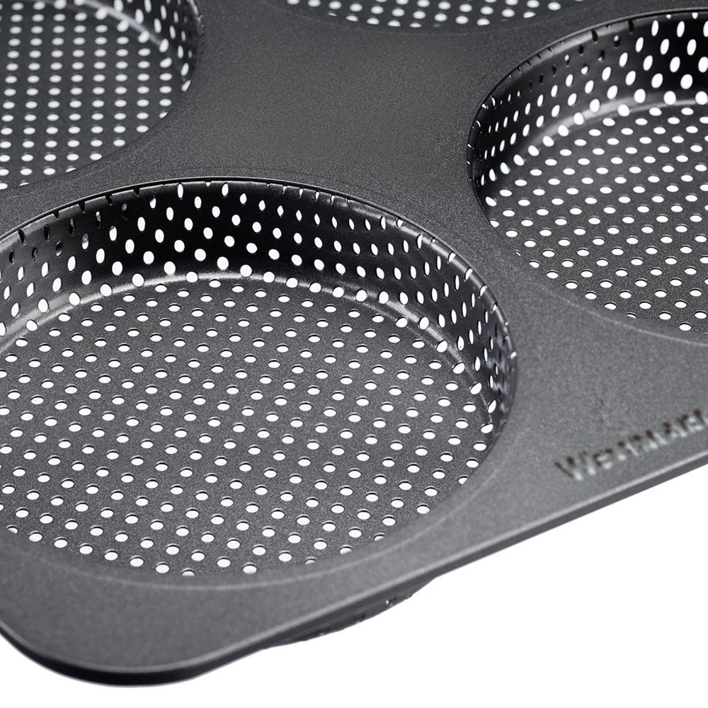 Tava de copt pentru 4 chifle burger, marca Westmark, fabricata din otel de inalta calitate acoperit cu un strat antiaderent.