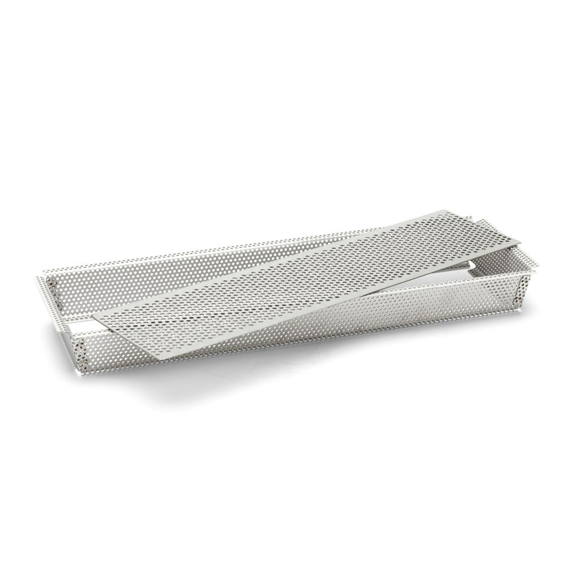 Tava perforata cu baza detasabila, marca de Buyer, fabricata din inox, cu dimensiunea 35 x 10,5 x 3,5 cm si hartie de copt inclusa.