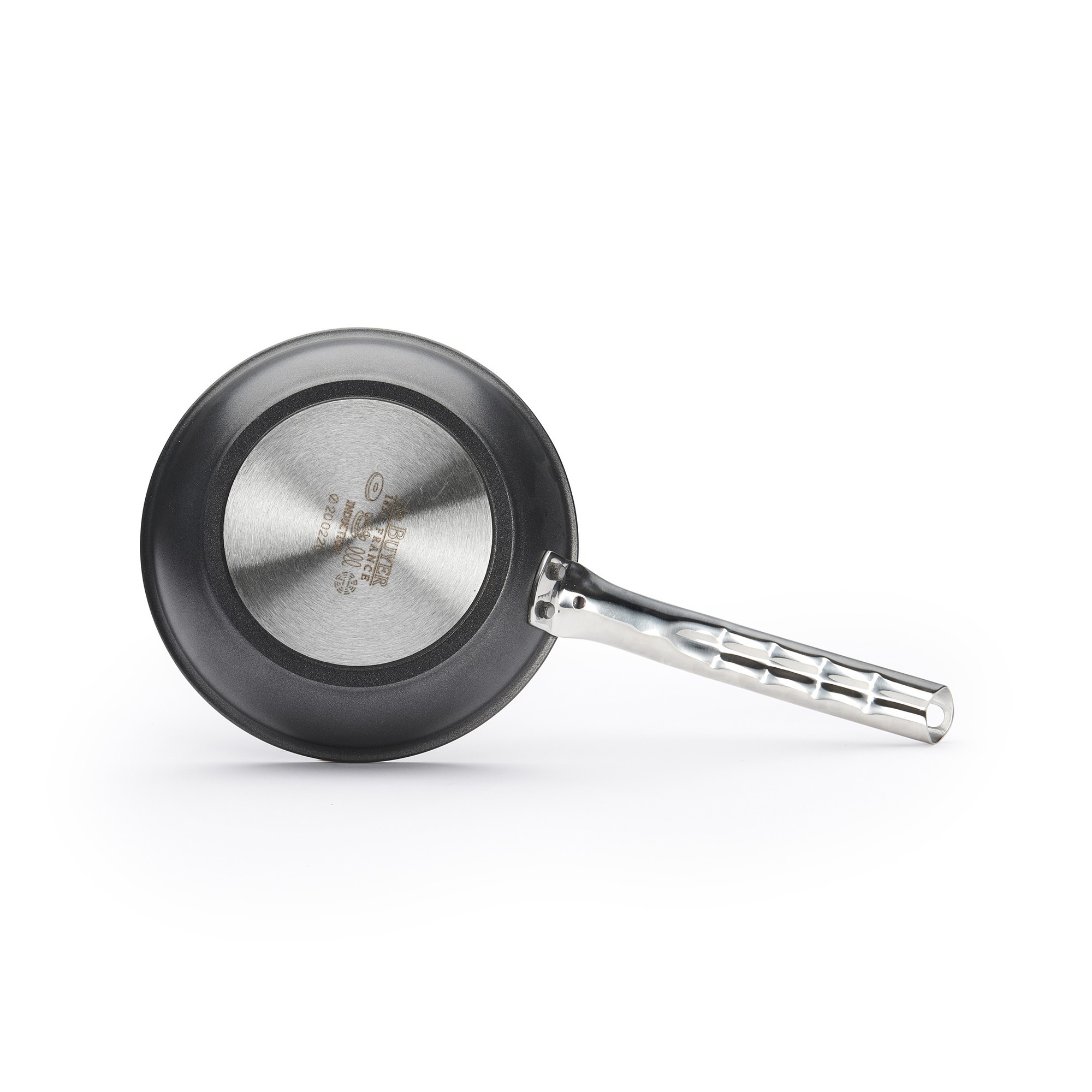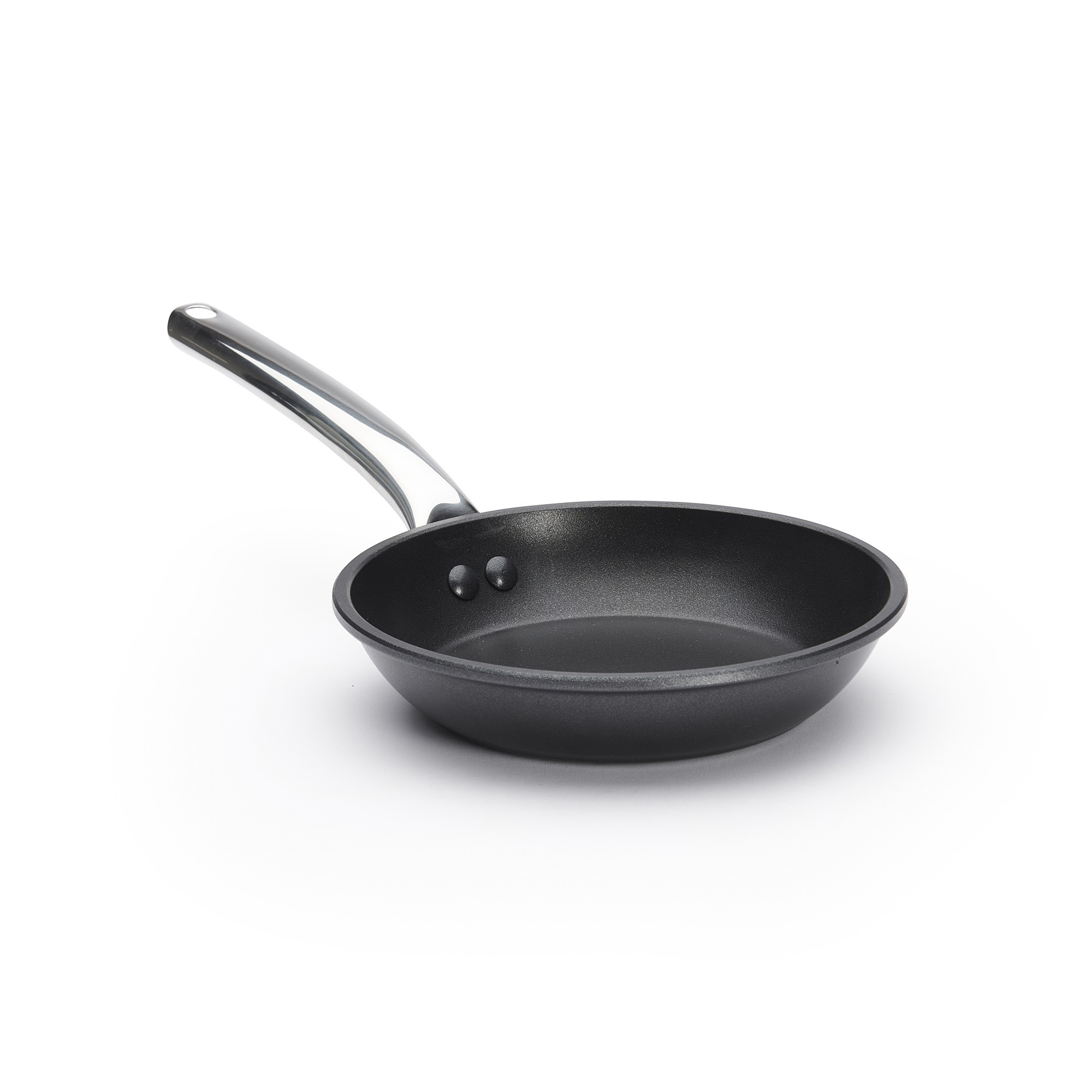 Tigaie profesionala, marca de Buyer, diametru 20 cm, inaltime 4,2 cm, fabricata din aluminiu turnat sub presiune, cu o grosime de 3 mm.