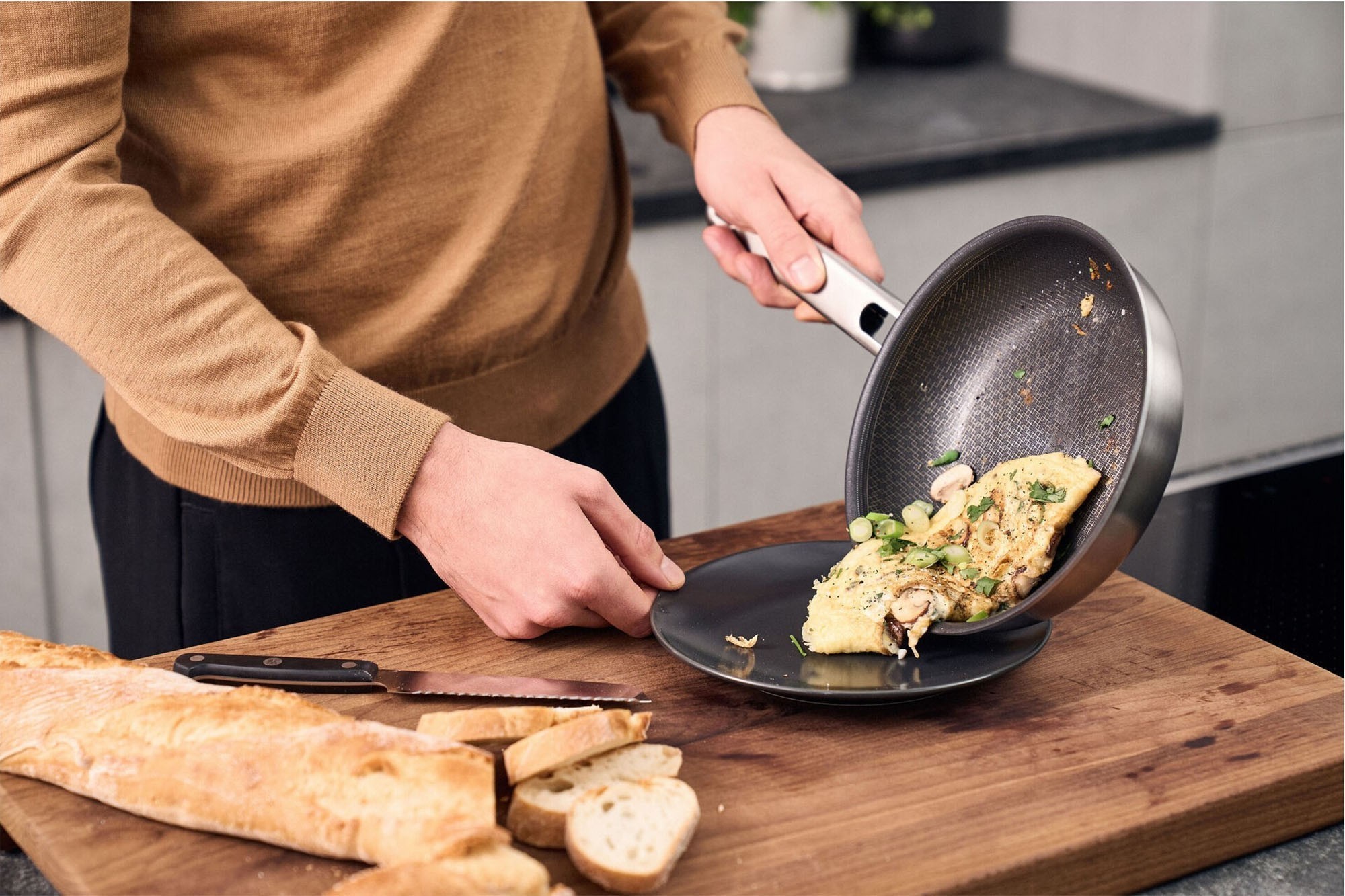 Tigaia ZWILLING Joy Plus combina componentele tigailor acoperite cu strat antiaderent cu cele ale tigailor neacoperite. Este potrivita atat pentru prepararea mancarurilor delicate, cat si pentru rumenire intensa. Pestele, ouale si legumele pot fi gatite cu usurinta in aceasta tigaie.