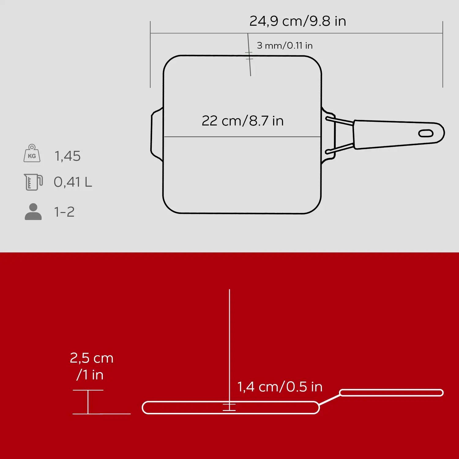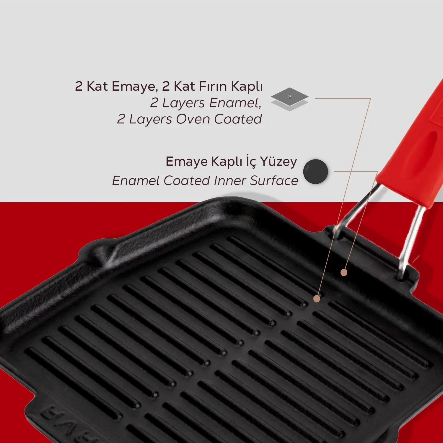 Tigaie grill patrata, marca Lava, dimensiuni 21 x 21 cm, fabricata din fonta.