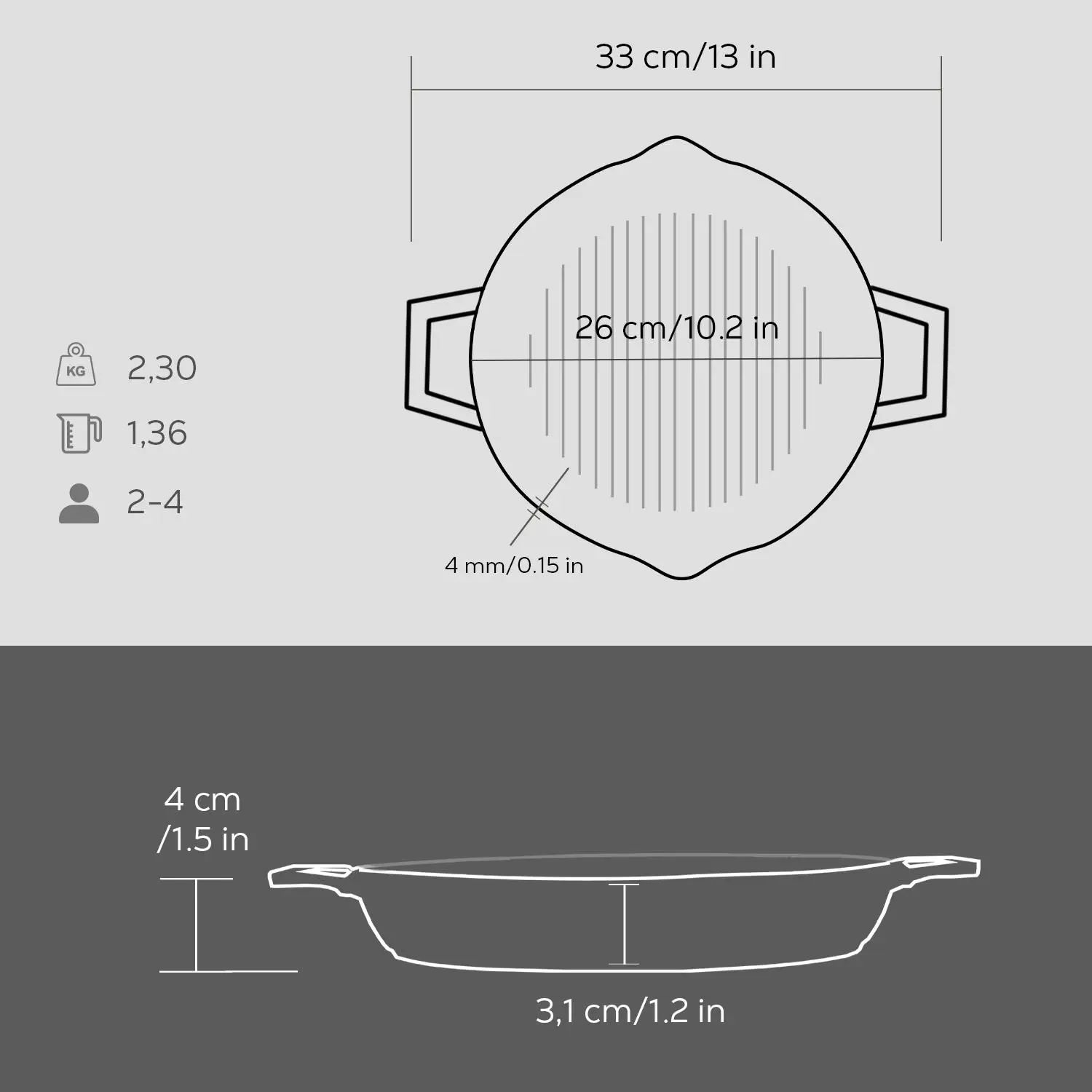 Tigaie Grill, marca Lava, diametru 26 cm, fabricata din fonta.