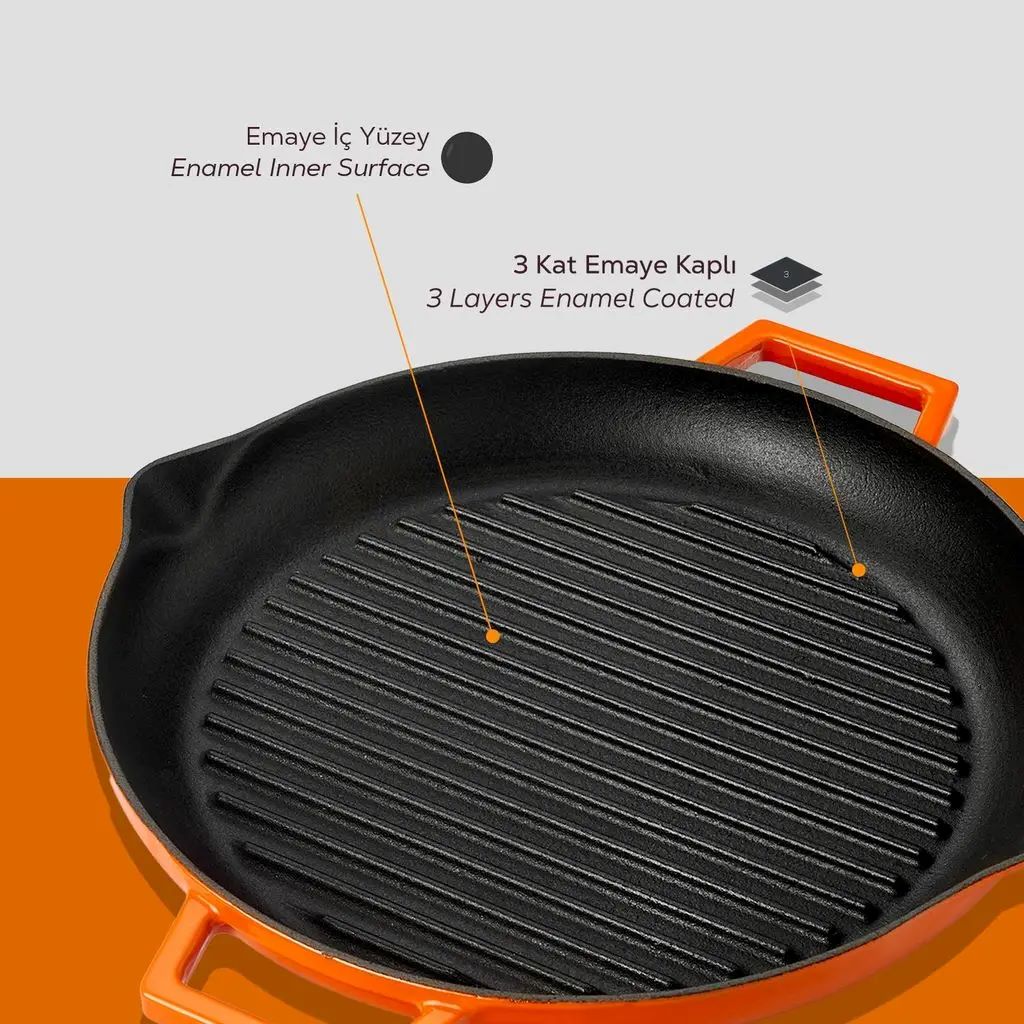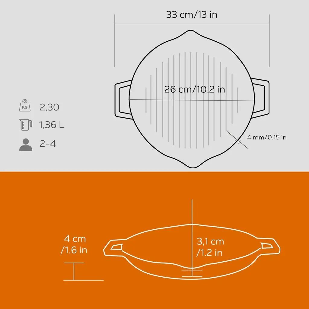 Tigaie grill, marca Lava, diametru interior 26 cm, 1,36 l capacitate, fabricata din fonta.