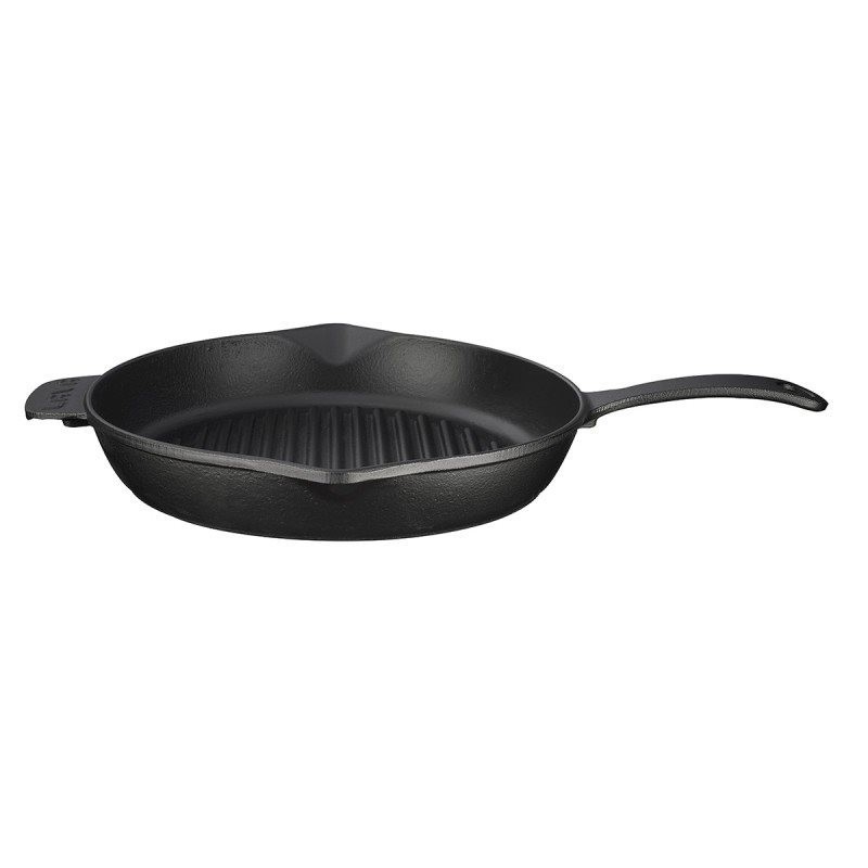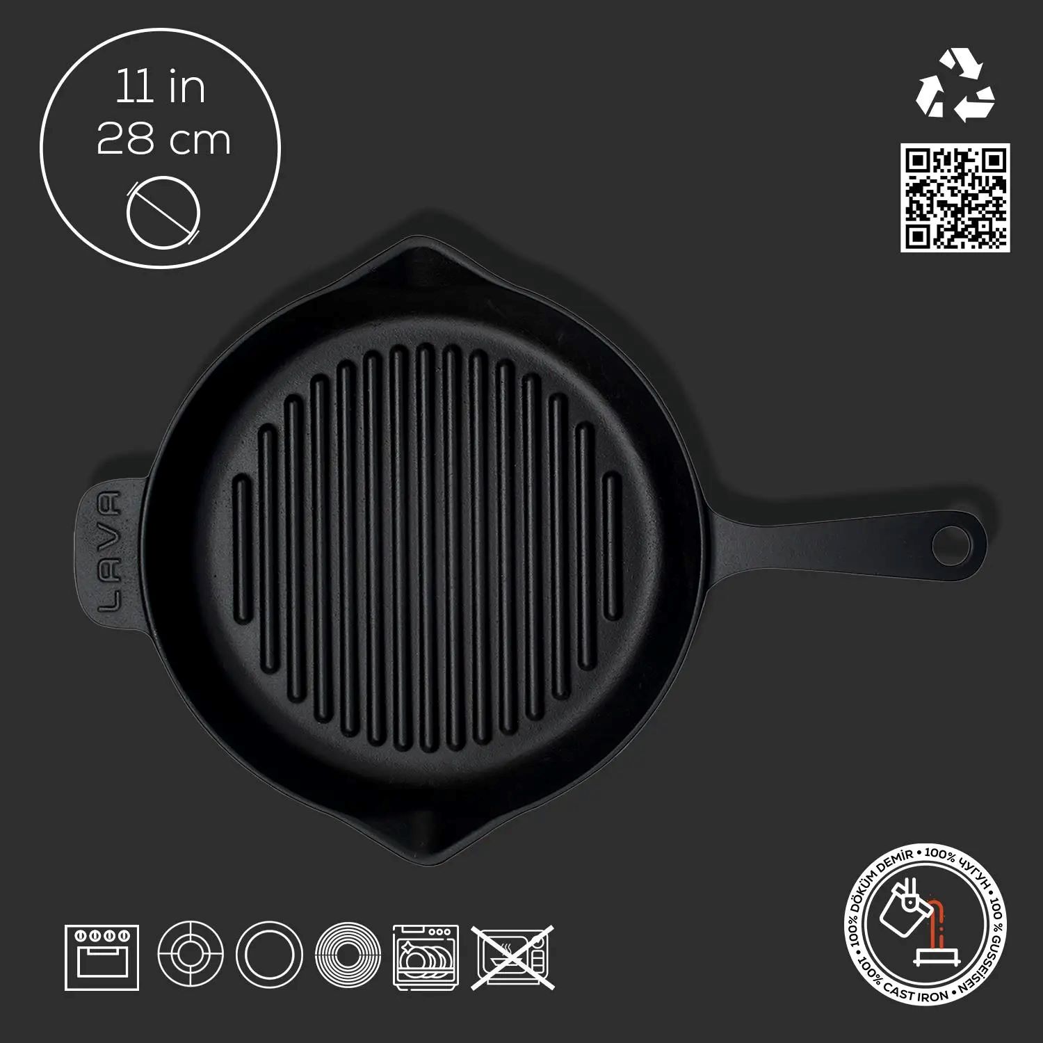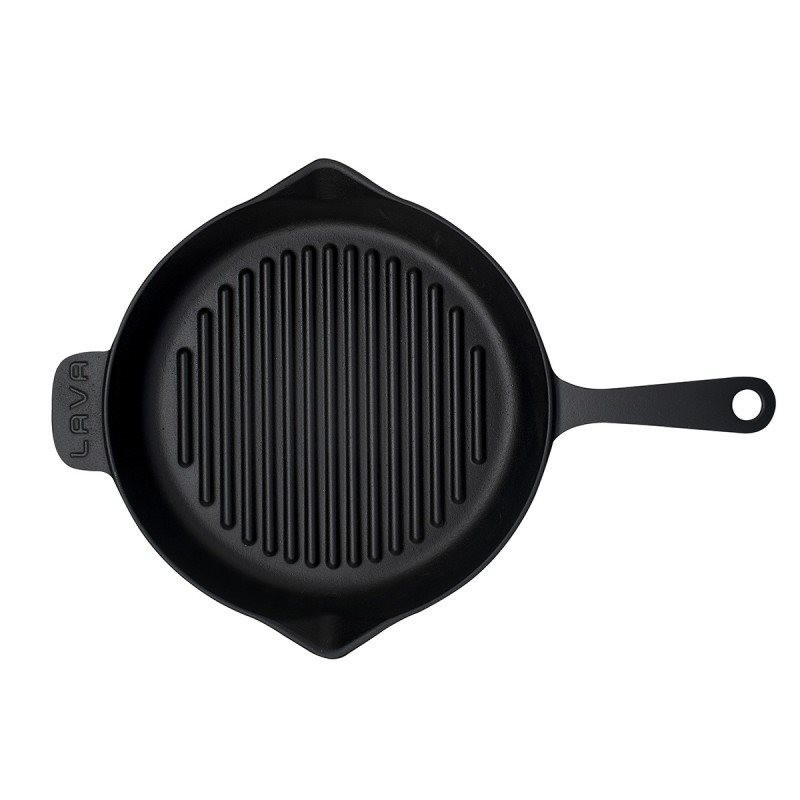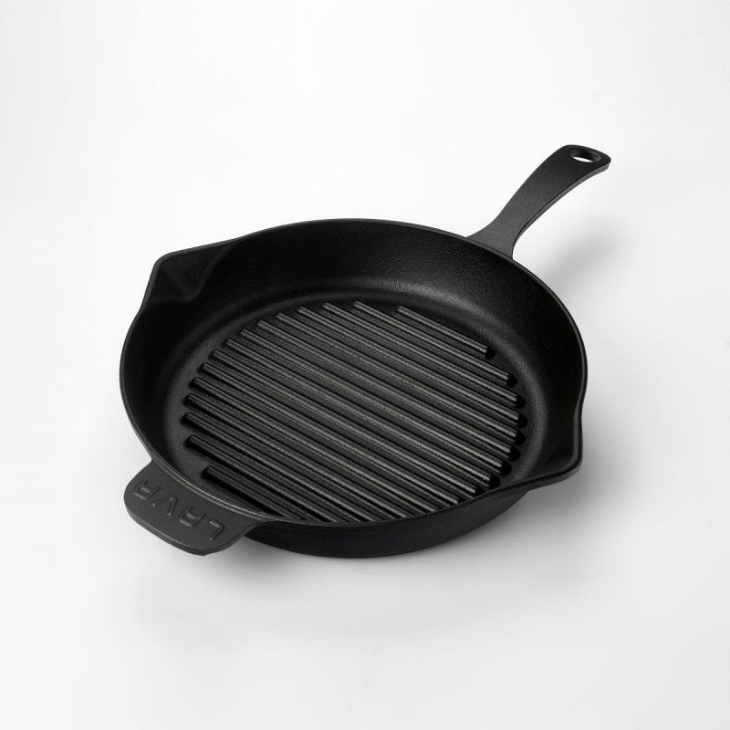 Tigaie grill rotunda, marca Lava, cu diametrul 28 cm, capacitate 2,16 l fabricata din fonta.