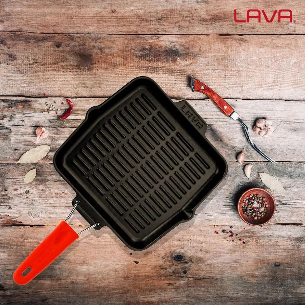 Tigaie grill patrata, marca Lava, dimensiuni 24 x 24 cm, fabricata din fonta.