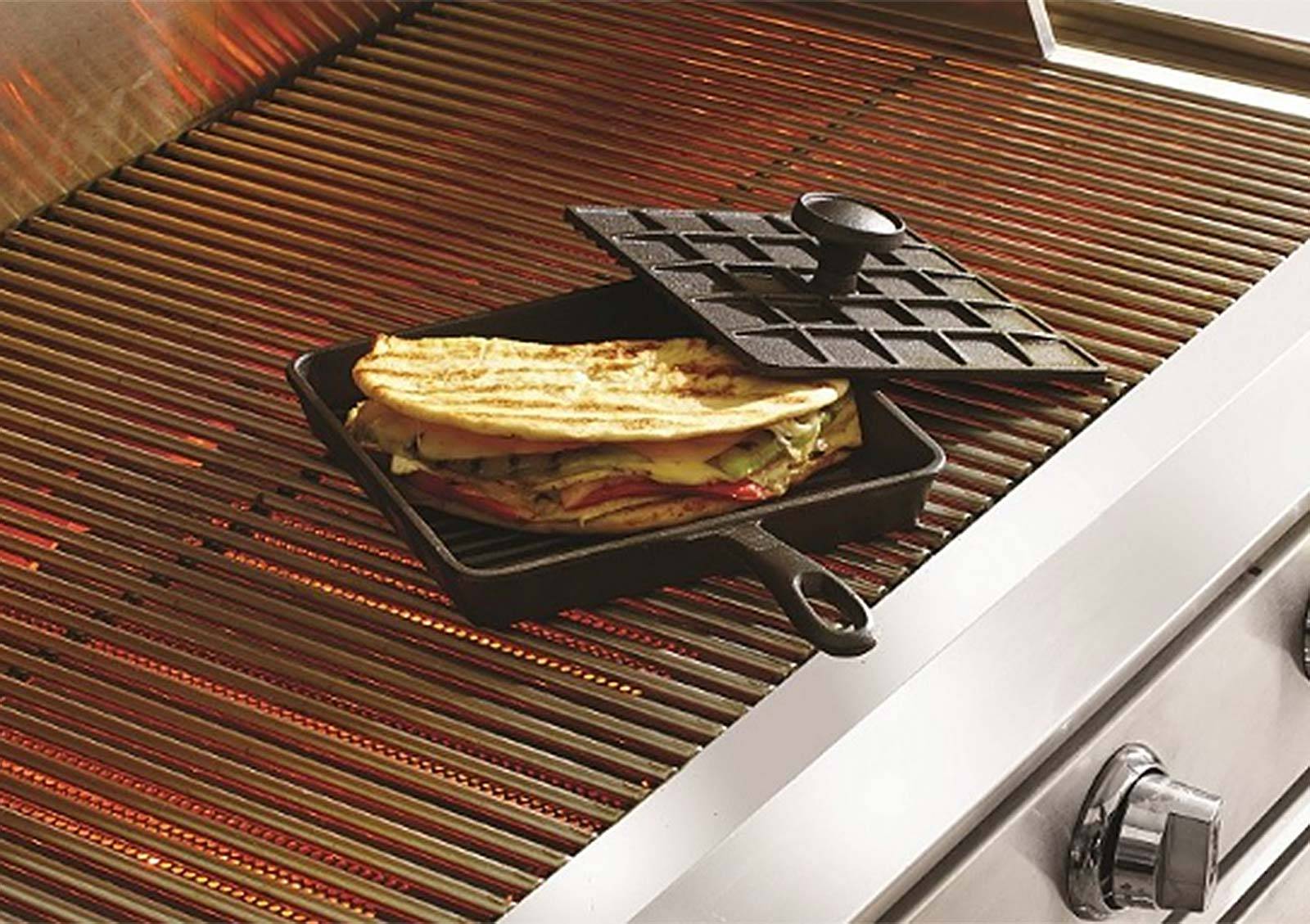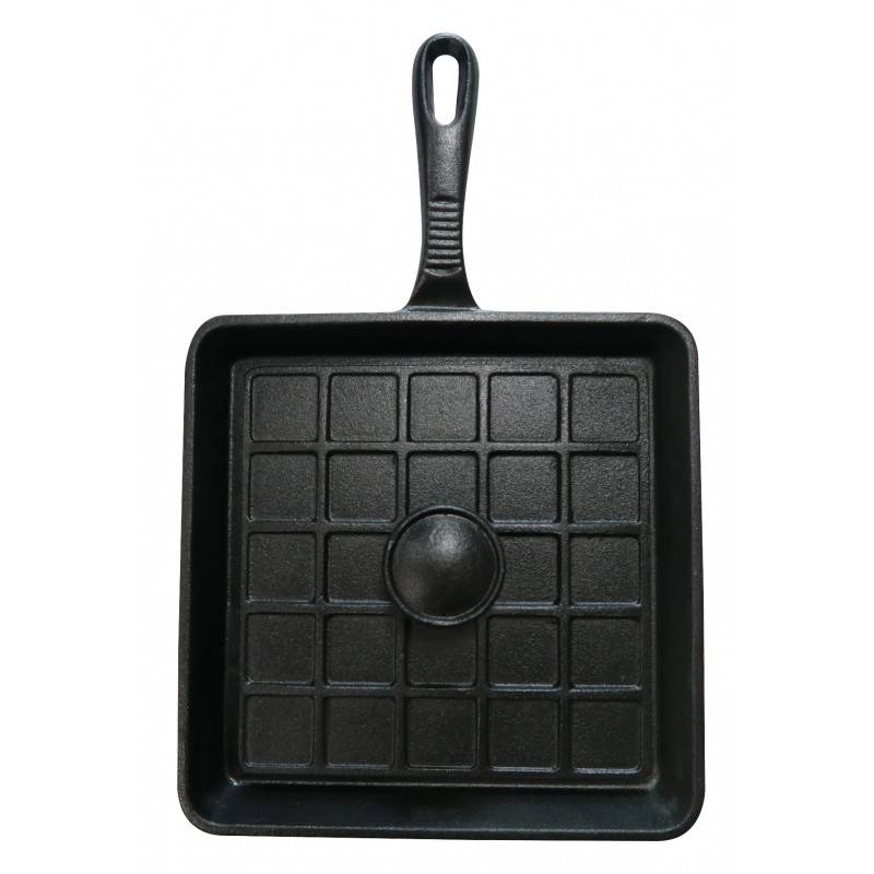 Tigaia profi pentru un Grill profi. Pentru ca va luati in serios titlul de maestru in ale gratarelor, tigaia din fonta de tip presa nu ar trebuie sa va lipseasca din bucatarie. Fiind ideala pentru gatirea a diverse sortimente de sandvisuri cum ar fi Monte Cristo, aceasta tigaie de tip presa distribuie caldura in mod egal. Utilizati tigaia durabila pentru a pregati sandwich-uri delicioase in cuptor, pe plita sau pe gratar. Tigaia este prevazuta din productie cu strat antiaderent si este gata de utilizare.