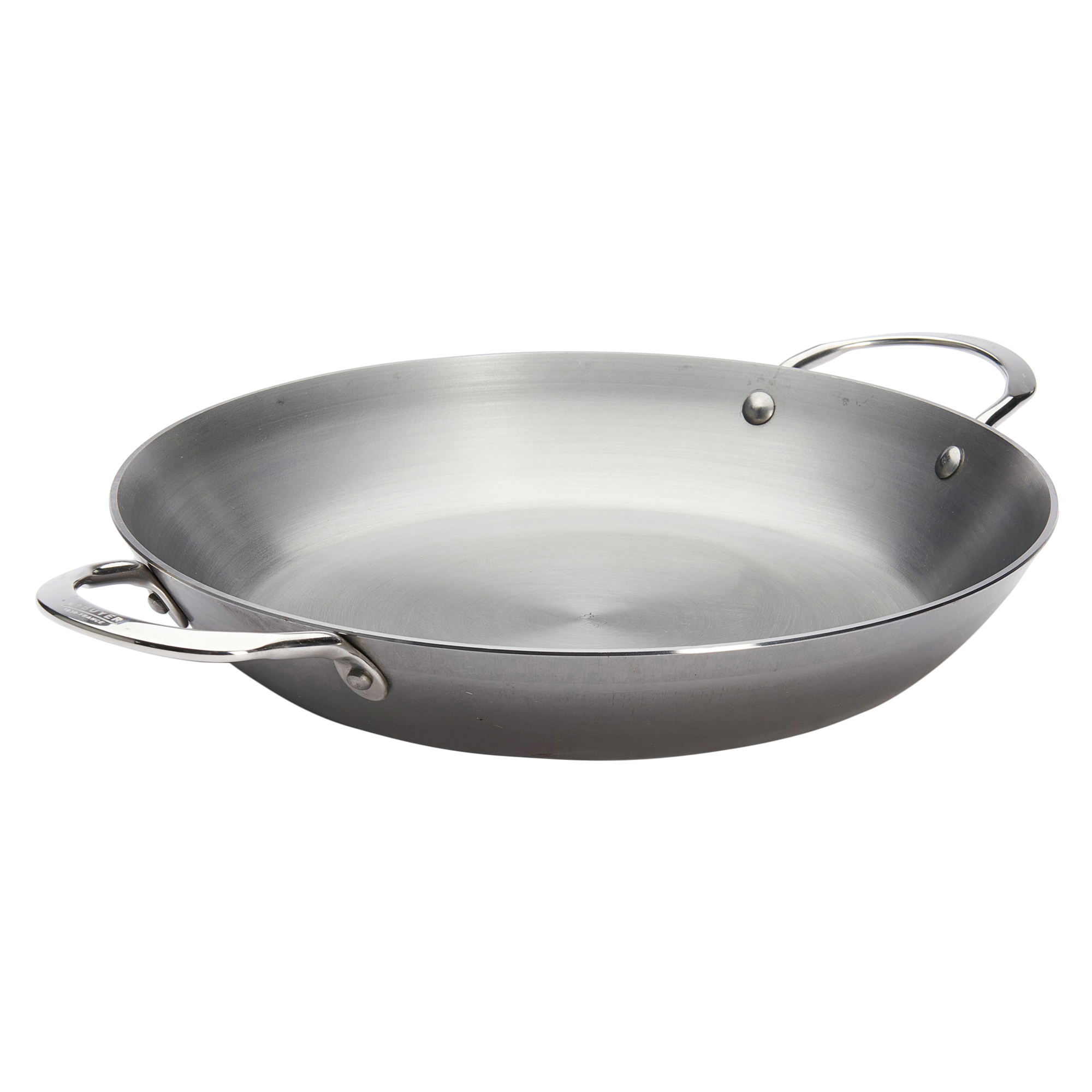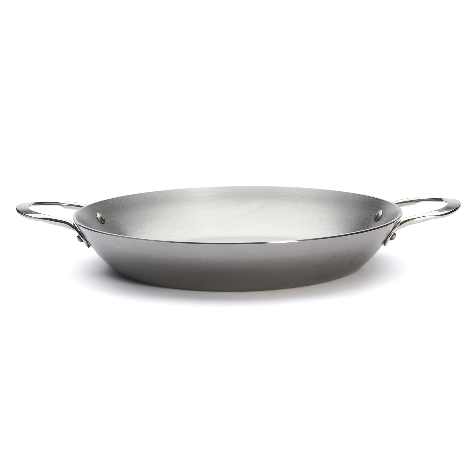 Tigaie paella cu 2 manere, diametru 32 cm, marca de Buyer. Tigaia paella din gama MINERAL B ELEMENT poate avea multiple utilizari putand fi folosita in cuptor, la prajire, pentru servire si bineinteles pentru a prepara faimoasa paella, datorita formei sale specifice ce asigura o evaporare corespunzatoare a lichidelor.