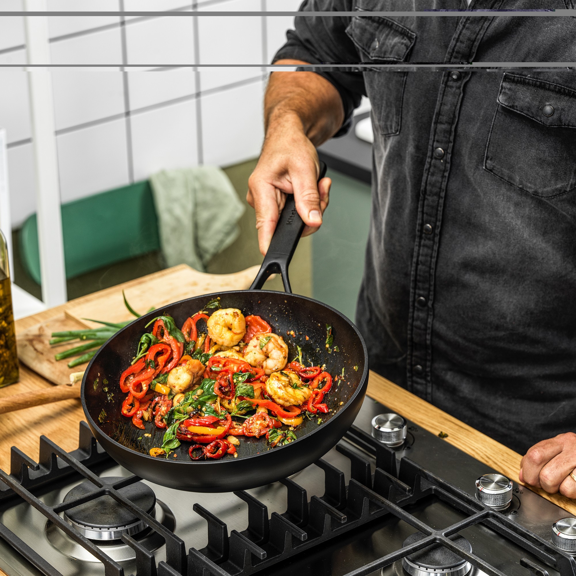 Colectia KitchenAid Classic Forged Aluminium are o baza forjata foarte groasa care se incalzeste rapid si uniform pentru rezultate perfecte la prajire. Un strat antiaderent ceramic (fara PFAS) asigura o eliberare usoara a alimentelor, cat si o curatare rapida.