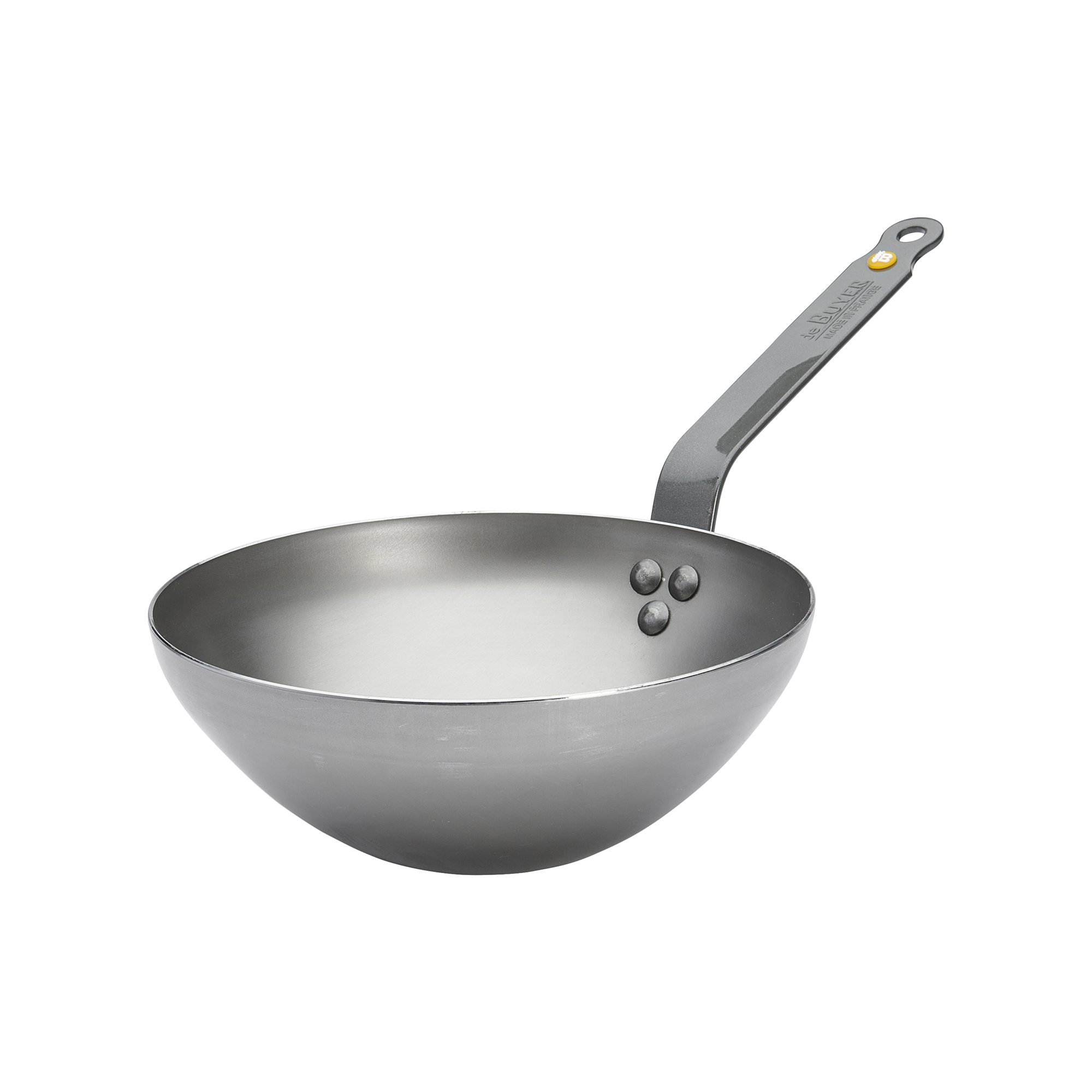 Tigaie wok profesionala, marca de Buyer, diametru 24 cm, inaltime 8 cm, fabricata din otel cu o grosime de 2 mm ce nu se deformeaza.