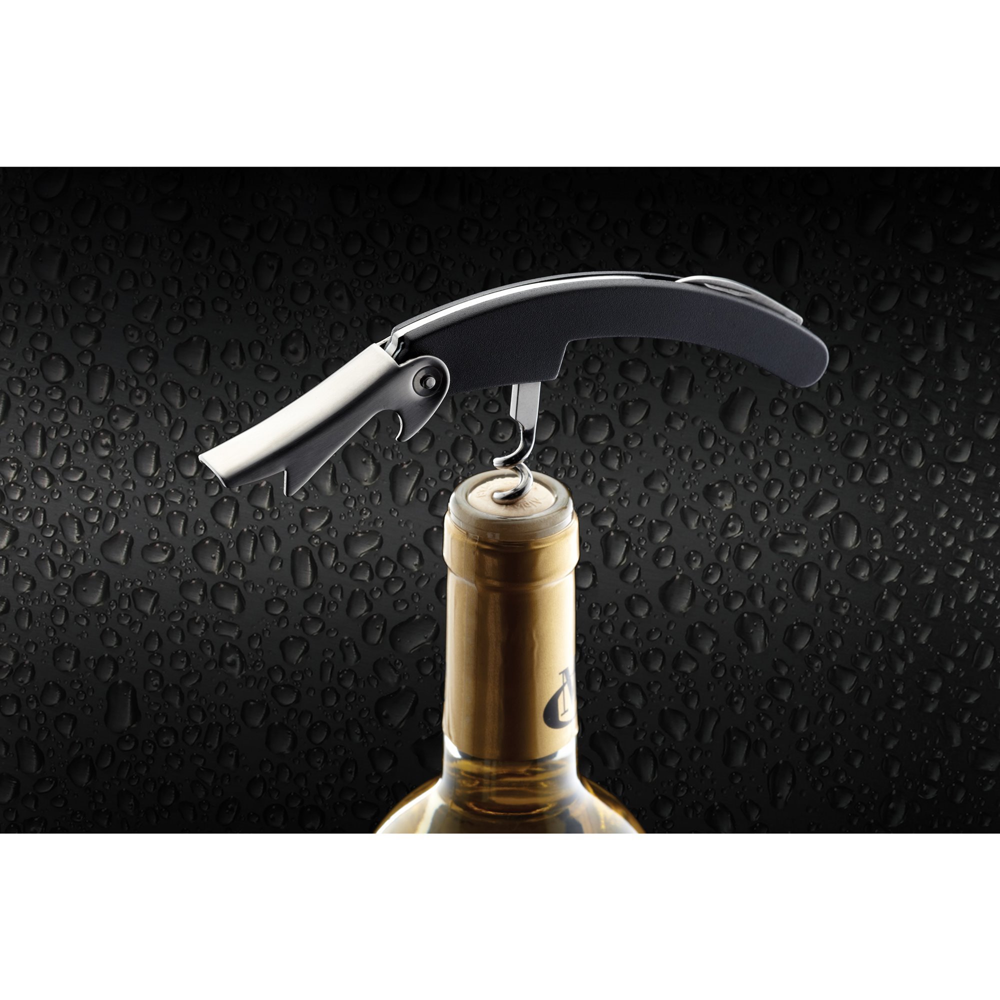 Tirbuson multifunctional, marca BarCraft, cu constructie compacta si ergonomica, ce include tirbuson, deschizator de capace si cutter pentru capison.