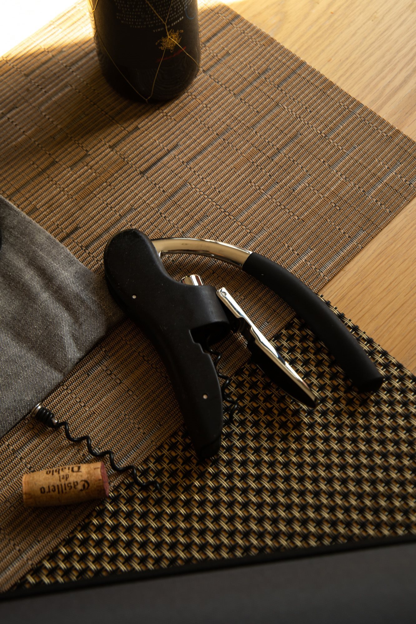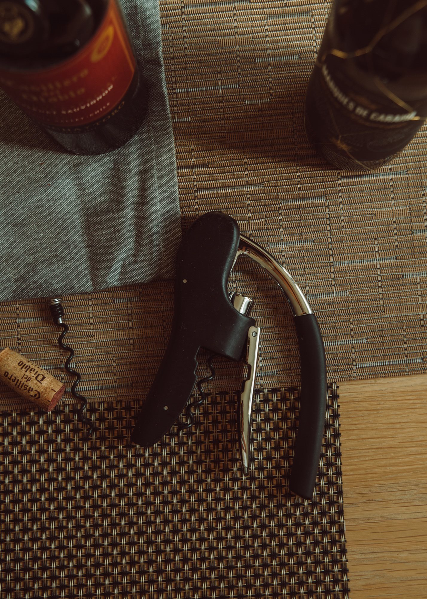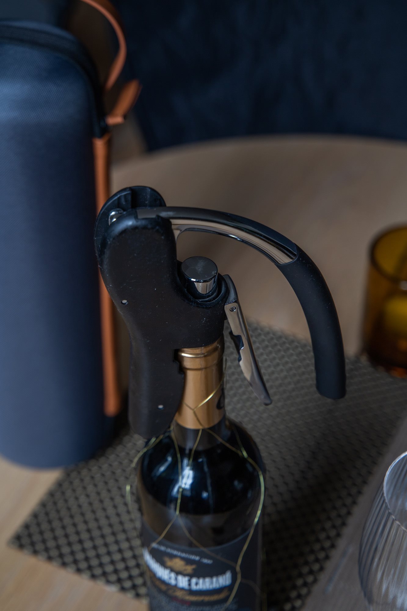 Este prevazut cu un cutitas pentru taierea capisonului sticlelor. Include si spirala de rezerva.
