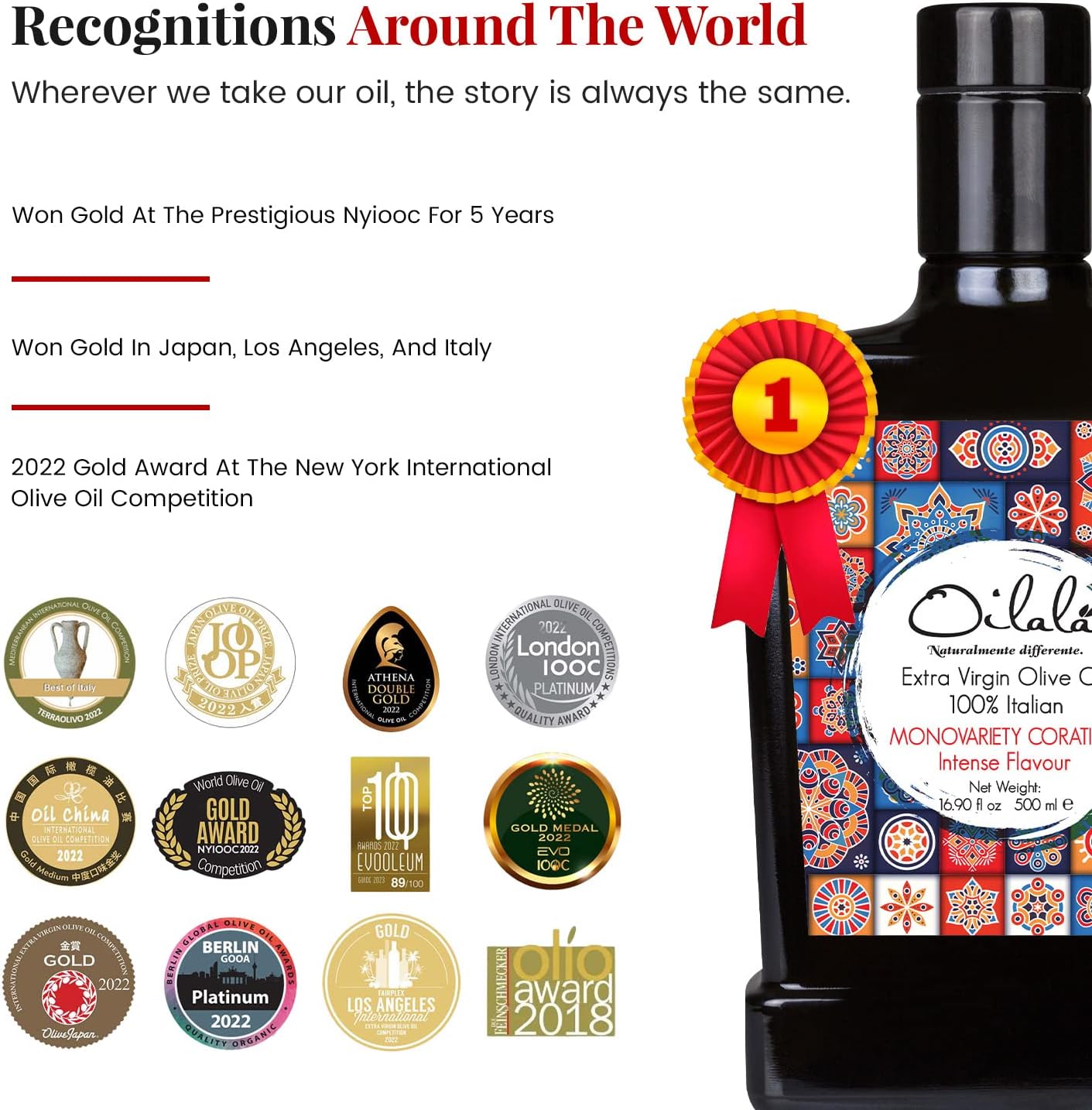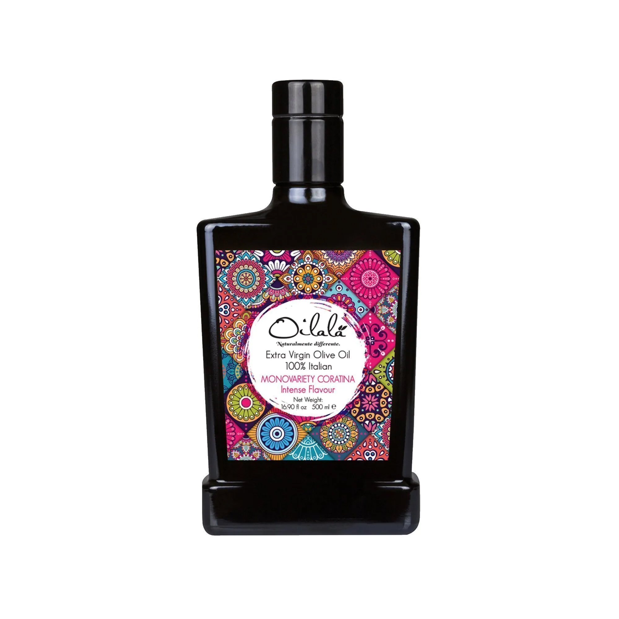 Realizat exclusiv din măsline Coratina: pentru cei care caută un ulei de măsline extravirgin cu un gust intens, fructat, caracteristic acestui soi, cu un postgust amărui și o iuțeală finală plăcută. Este excelența în materie de ulei de măsline – acel ulei care “pișcă în gât” și încântă cunoscătorii.